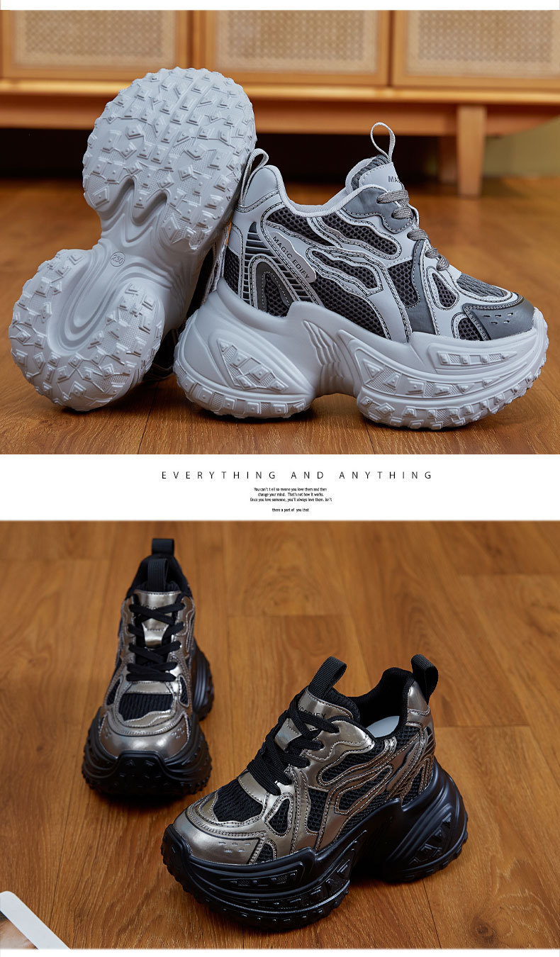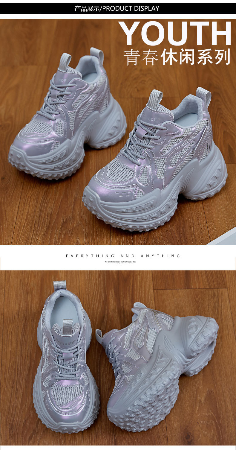내부 높이 여성 신발 12cm 새로운 통기성 토르 신발 두꺼운 단독 메쉬 작은 스포츠 캐주얼 신발 여성 A8936