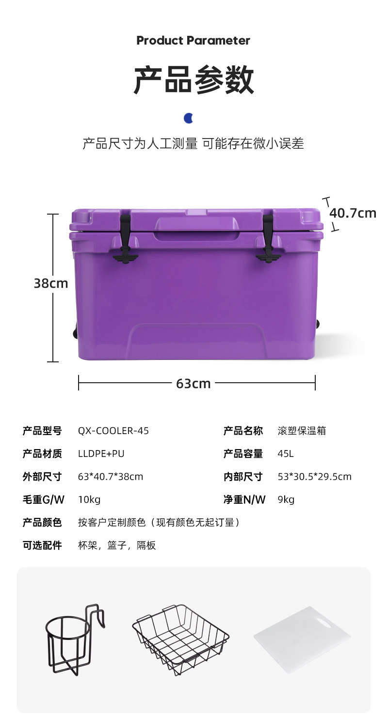 야외 캠핑 피크닉 쿨러 45L 바다 낚시 운송 신선한 상자 오래 지속되는 온도 잠금 콜드 체인 절연 상자
