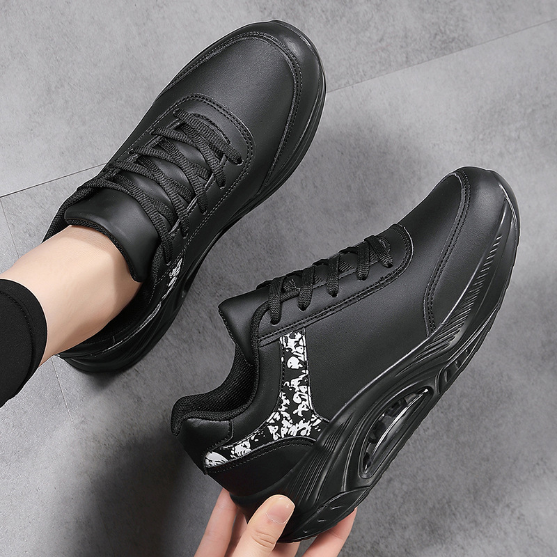 새로운 국경 여성 신발 짧은 흰색 신발 학생 소프트 단독 스포츠 캐주얼 신발 두꺼운 단독 증가 로킹 신발 가죽 표면