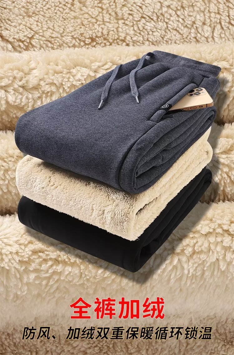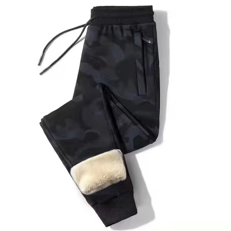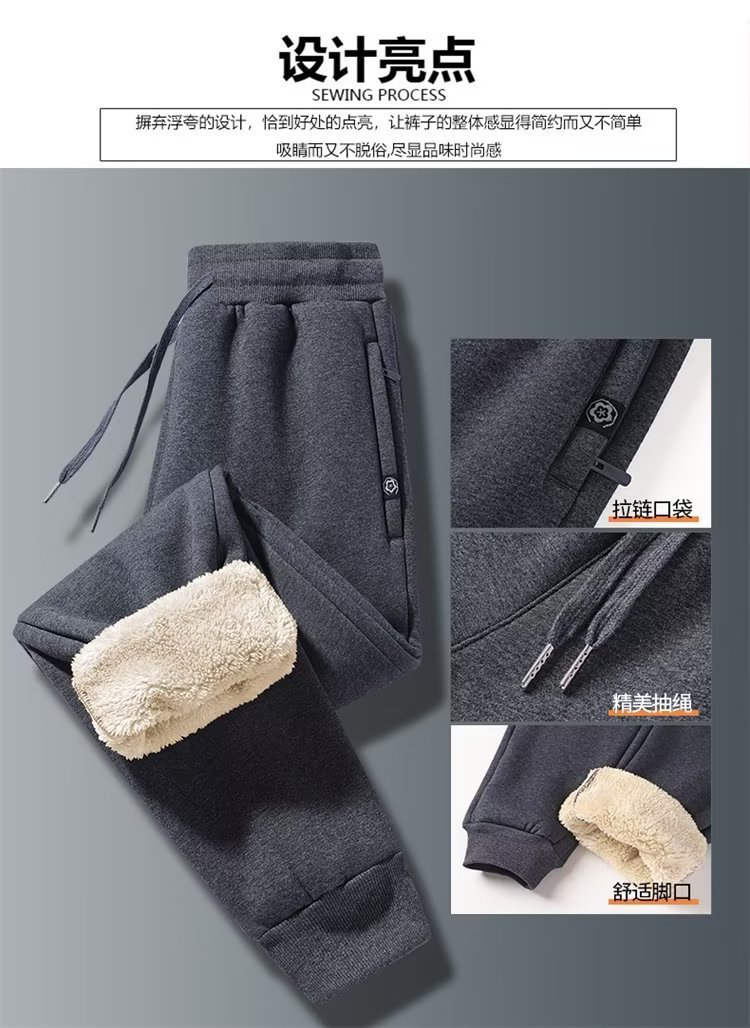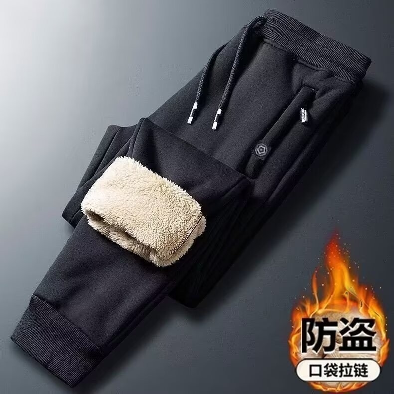 가을과 겨울 양털 양털 캐주얼 바지 남자 기모 두꺼운 포켓 지퍼 플러스 사이즈 따뜻한 바지를 덮는 느슨한 고기