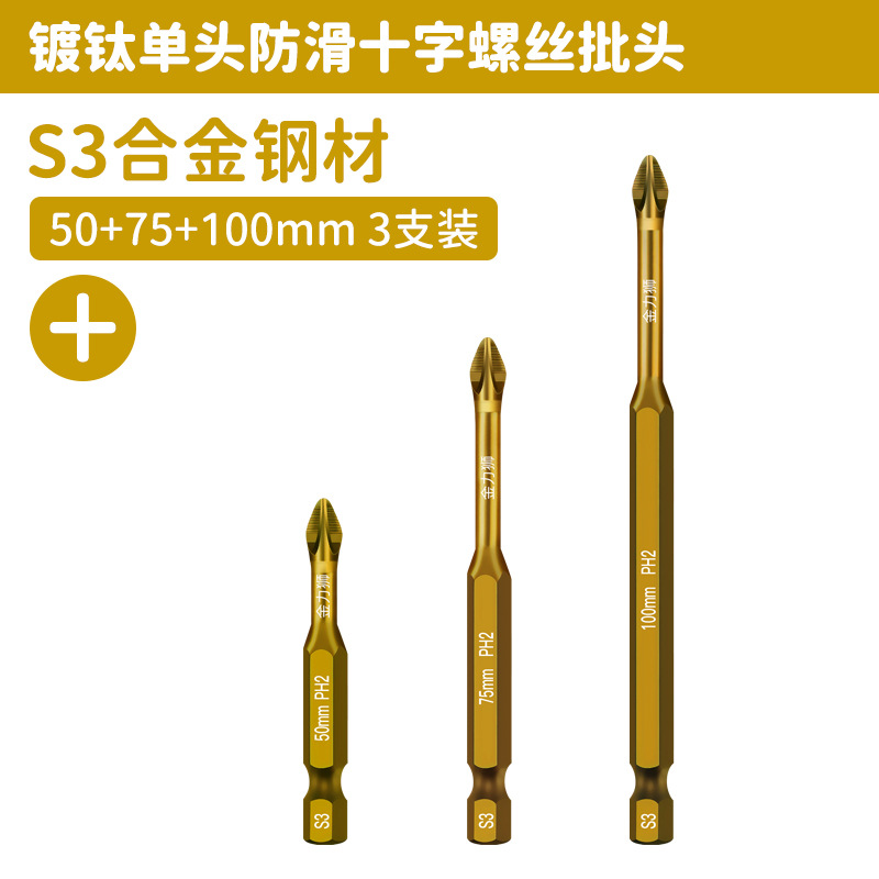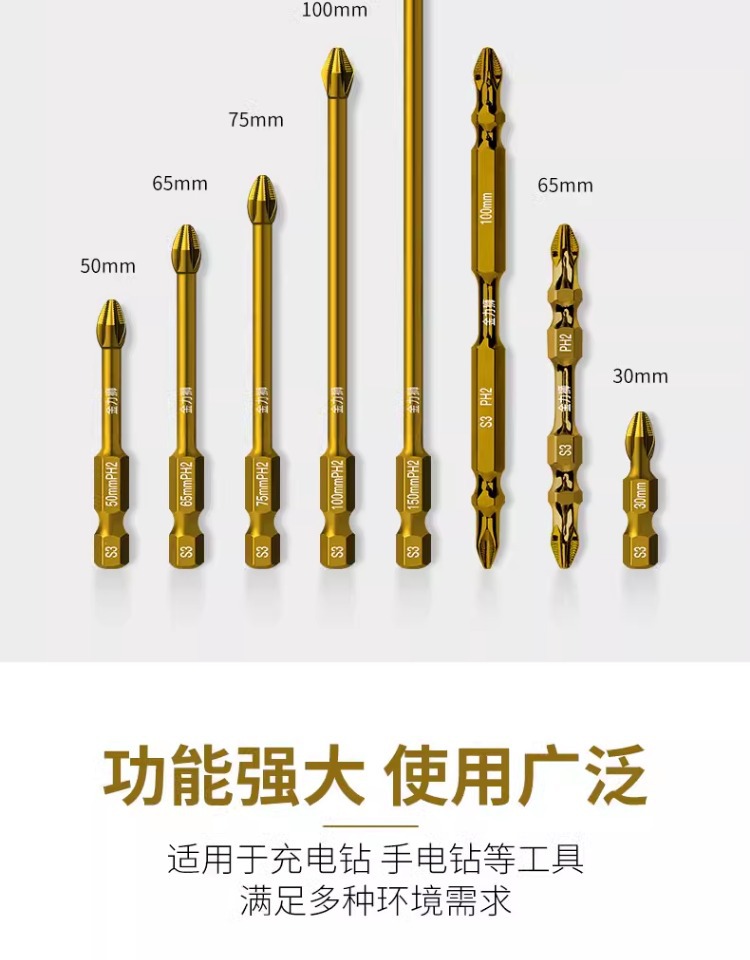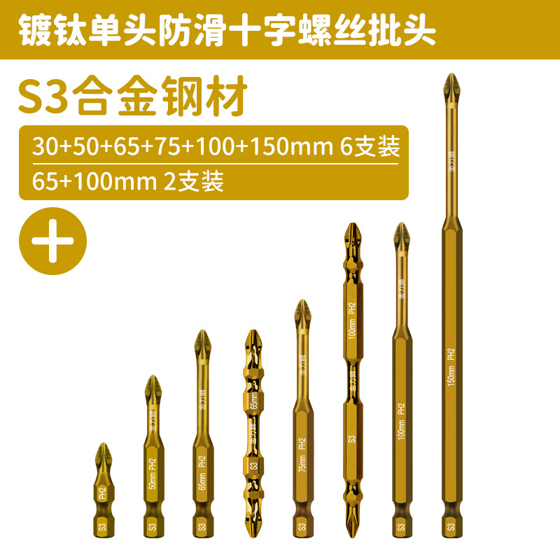 • S3 초경질 티타늄 도금 미끄럼 방지 비트 30+50+65+75+100+150+더블 헤드 65+100