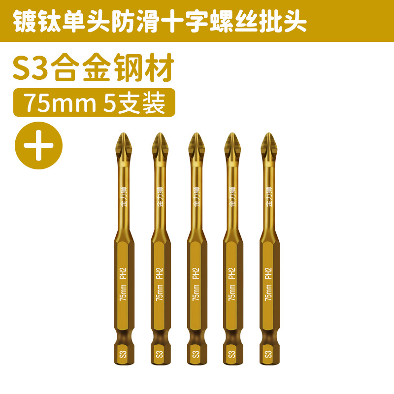 • S3 초경질 티타늄 도금 미끄럼 방지 비트 75mm 5개
