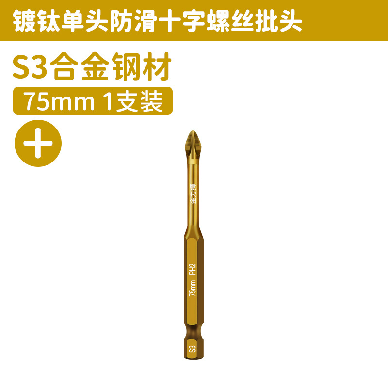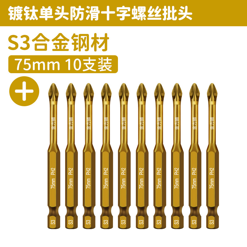 • S3 초경질 티타늄 도금 미끄럼 방지 비트 75mm 10개
