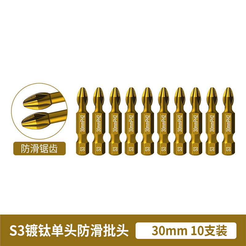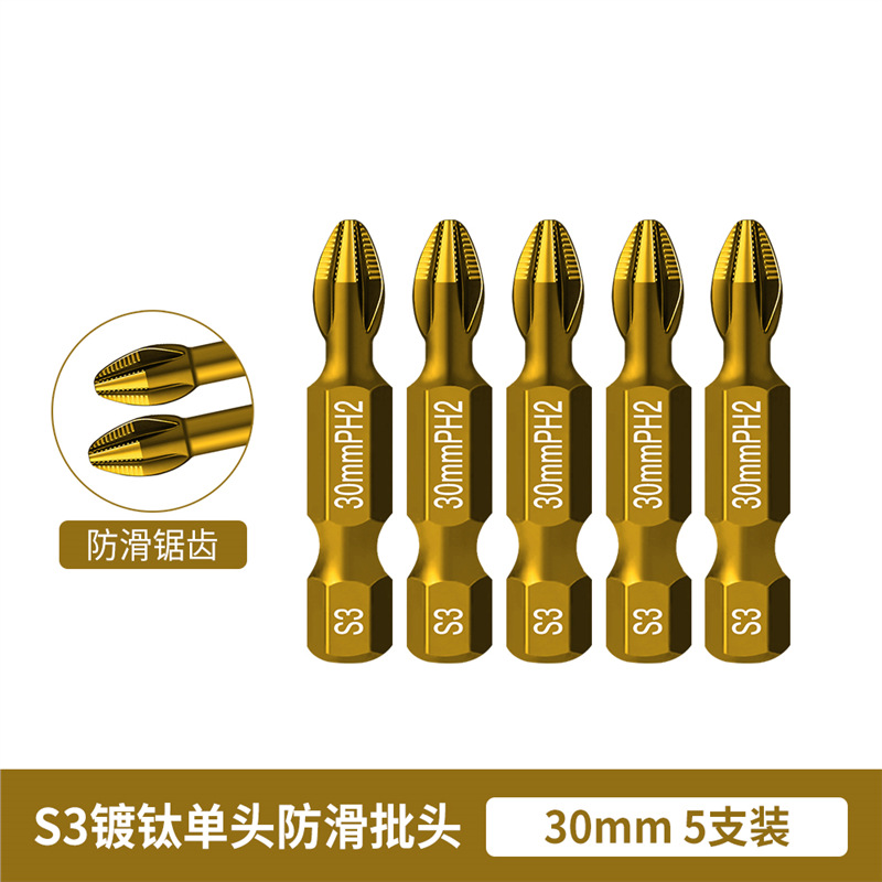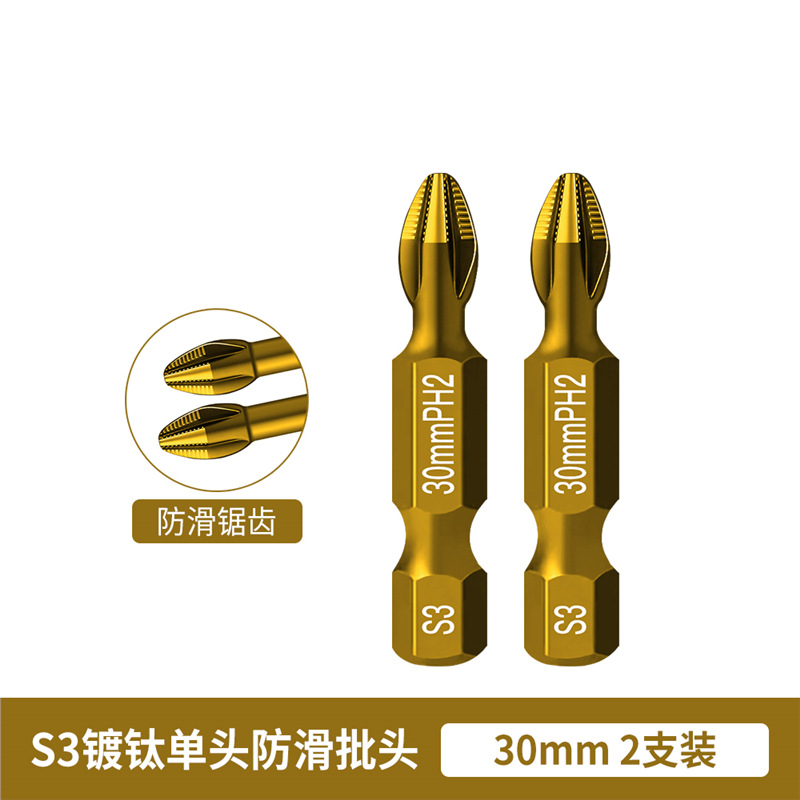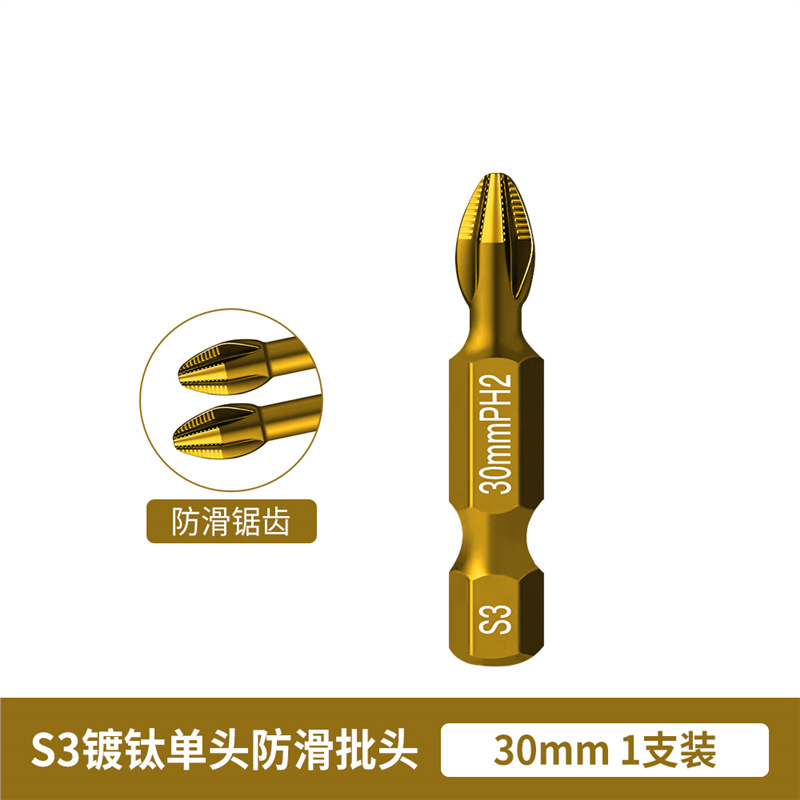 • S3 초경질 티타늄 도금 미끄럼 방지 비트 30mm 1개(초단자 및 약한 자기 촬영 시 주의하세요)