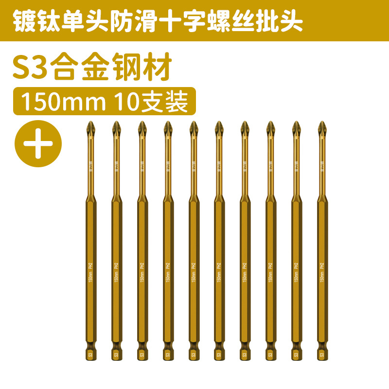 • S3 초경질 티타늄 도금 미끄럼 방지 비트 150mm 10개