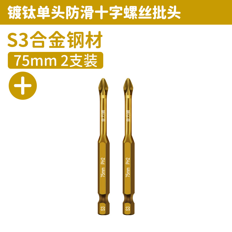 • S3 초경질 티타늄 도금 미끄럼 방지 비트 75mm 2개