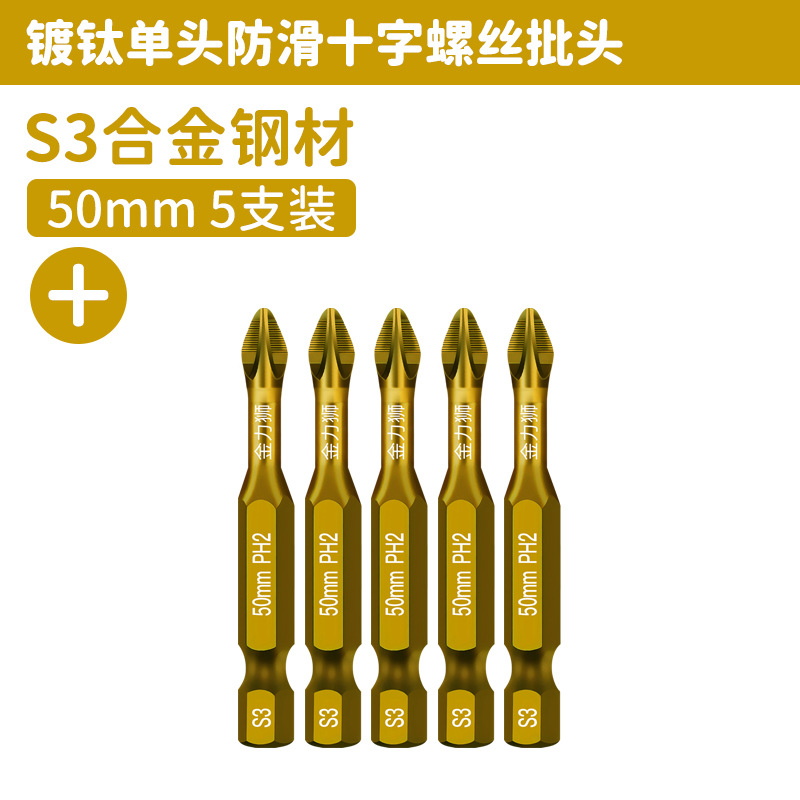 • S3 초경질 티타늄 도금 미끄럼 방지 비트 50mm 5개