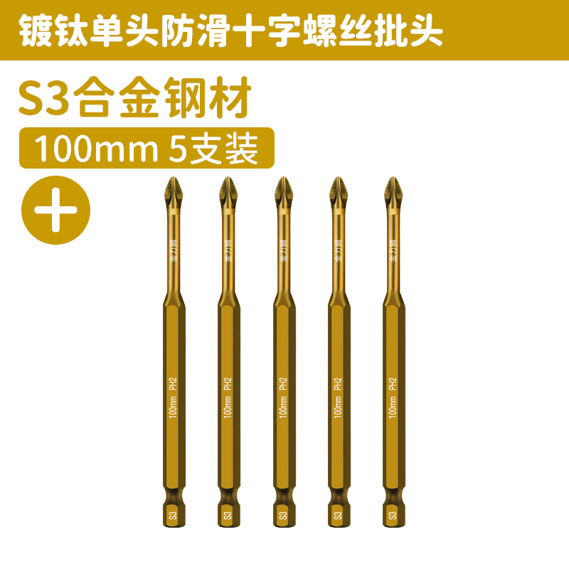 • S3 초경질 티타늄 도금 미끄럼 방지 비트 100mm 5개