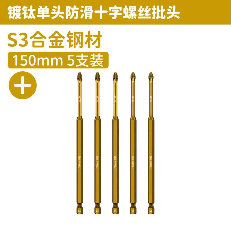 • S3 초경질 티타늄 도금 미끄럼 방지 비트 150mm 5개