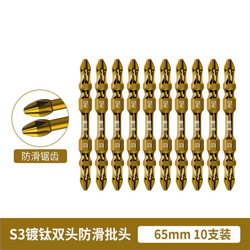• ✓S3 초경질 티타늄 도금 양단 미끄럼 방지 비트 65mm 10개