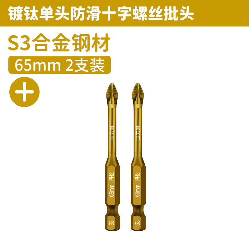 • S3 초경질 티타늄 도금 미끄럼 방지 비트 65mm 2개