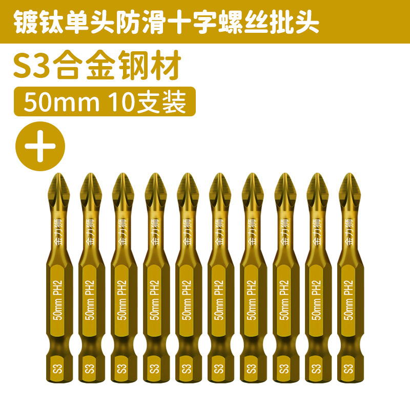 • S3 초경질 티타늄 도금 미끄럼 방지 비트 50mm 10개