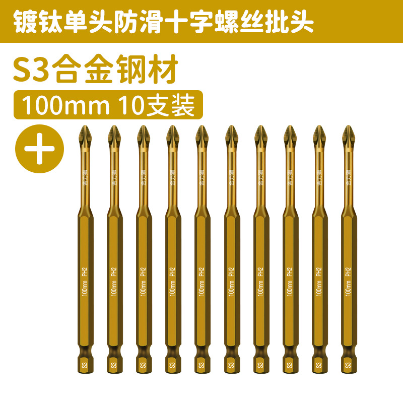 • S3 초경질 티타늄 도금 미끄럼 방지 비트 100mm 10개