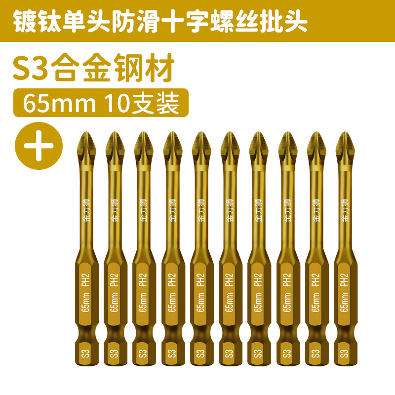 • S3 초경질 티타늄 도금 미끄럼 방지 비트 65mm 10개