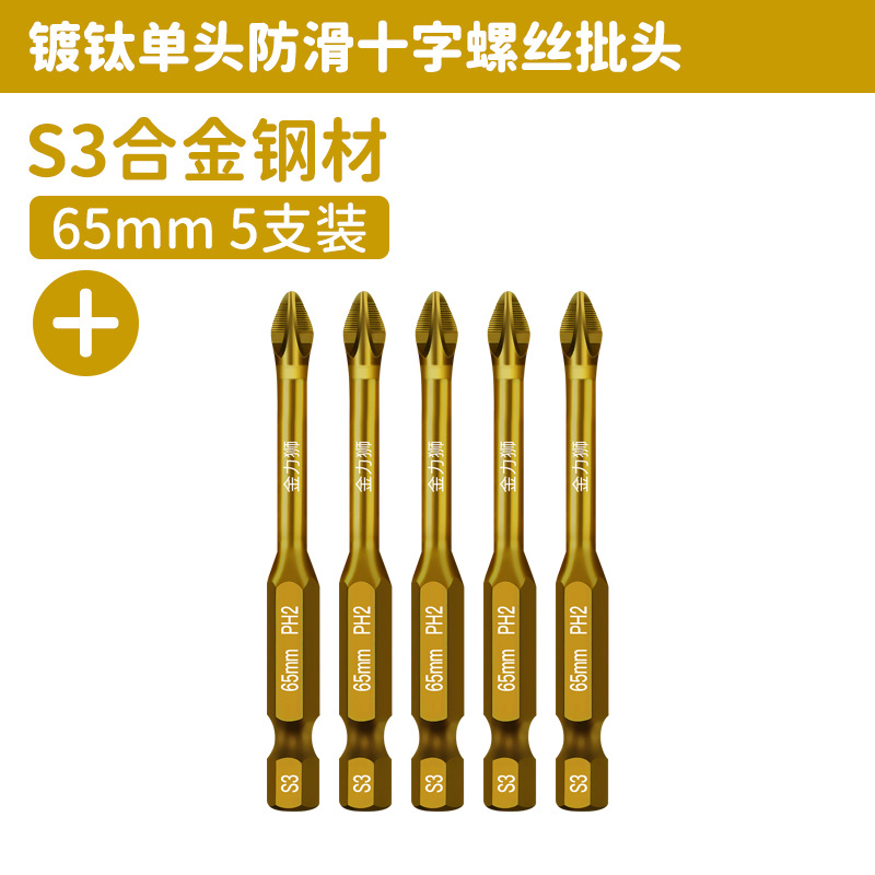 • S3 초경질 티타늄 도금 미끄럼 방지 비트 65mm 5개