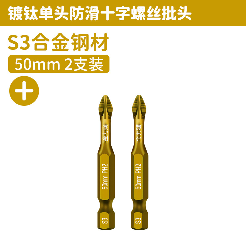 • S3 초경질 티타늄 도금 미끄럼 방지 비트 50mm 2개