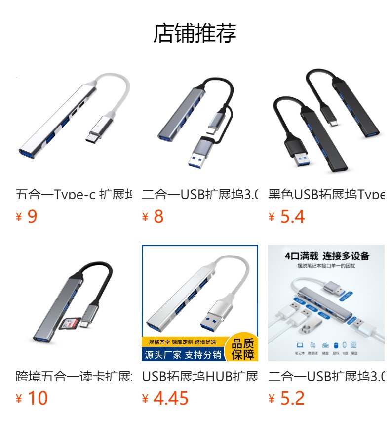 USB 확장 도크 3.0 타입-C 다기능 컴퓨터 분배기 허브 고속 전송 허브스토어 가기