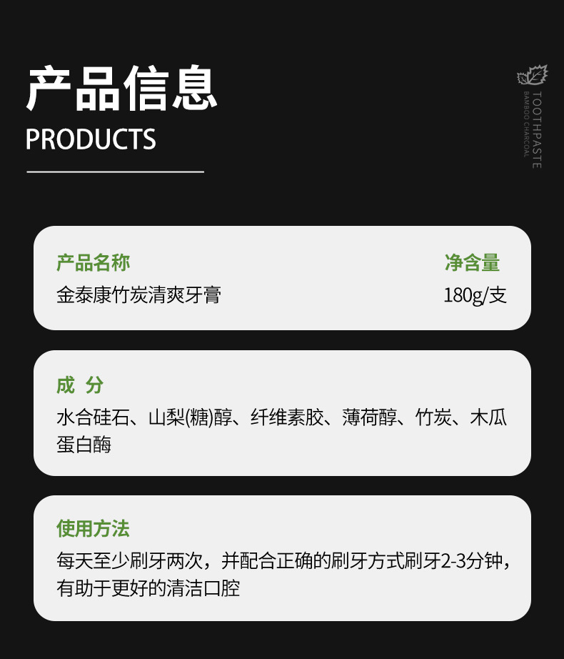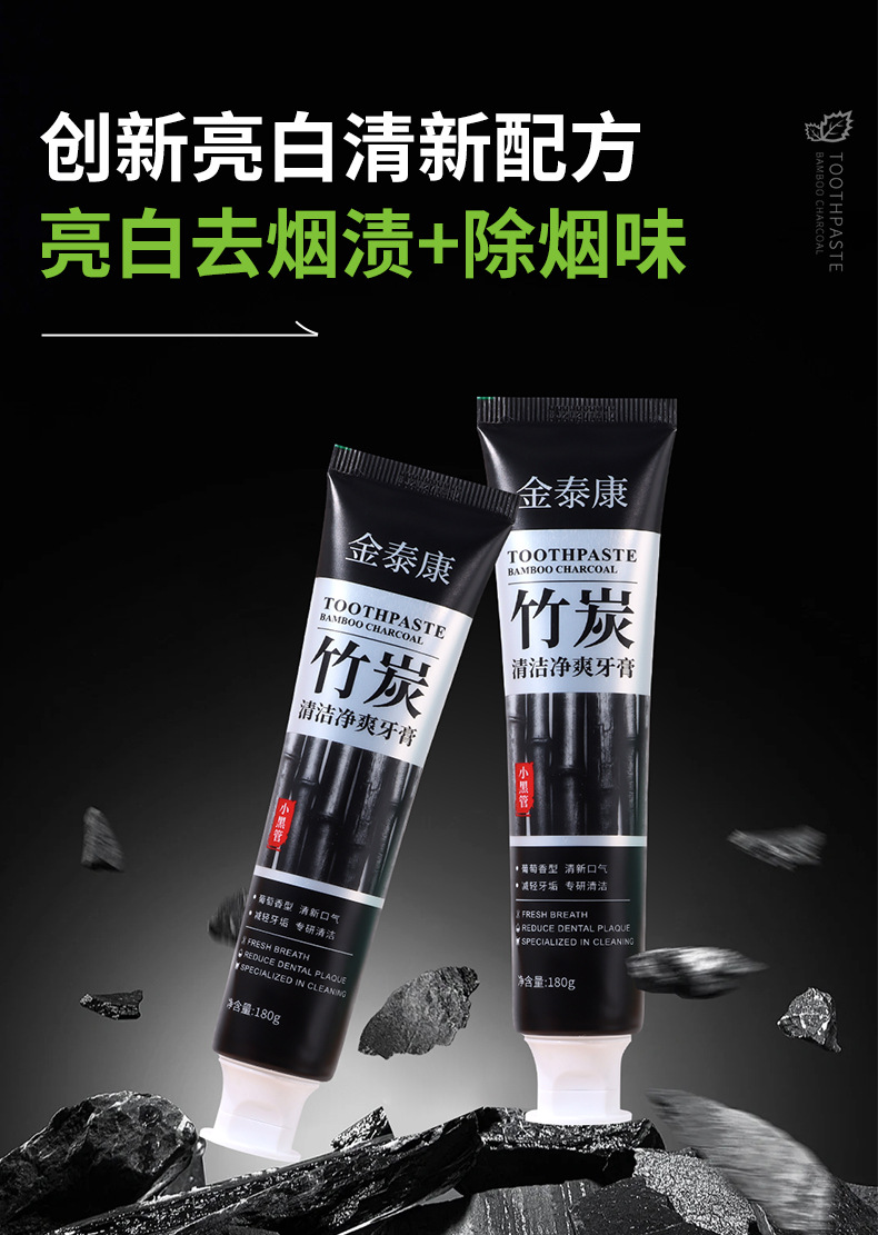 진태강 검은 튜브 대나무 숯 깨끗하고 시원한 치약 얼룩 감소 노란색 유지 보수 껌 밝게하는 흰색 치아 캐비티 케어스토어 가기