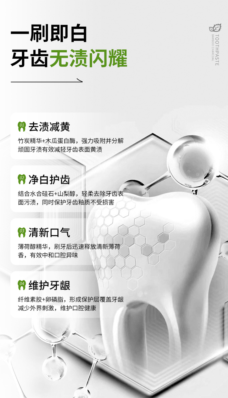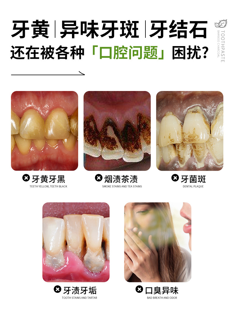 진태강 검은 튜브 대나무 숯 깨끗하고 시원한 치약 얼룩 감소 노란색 유지 보수 껌 밝게하는 흰색 치아 캐비티 케어