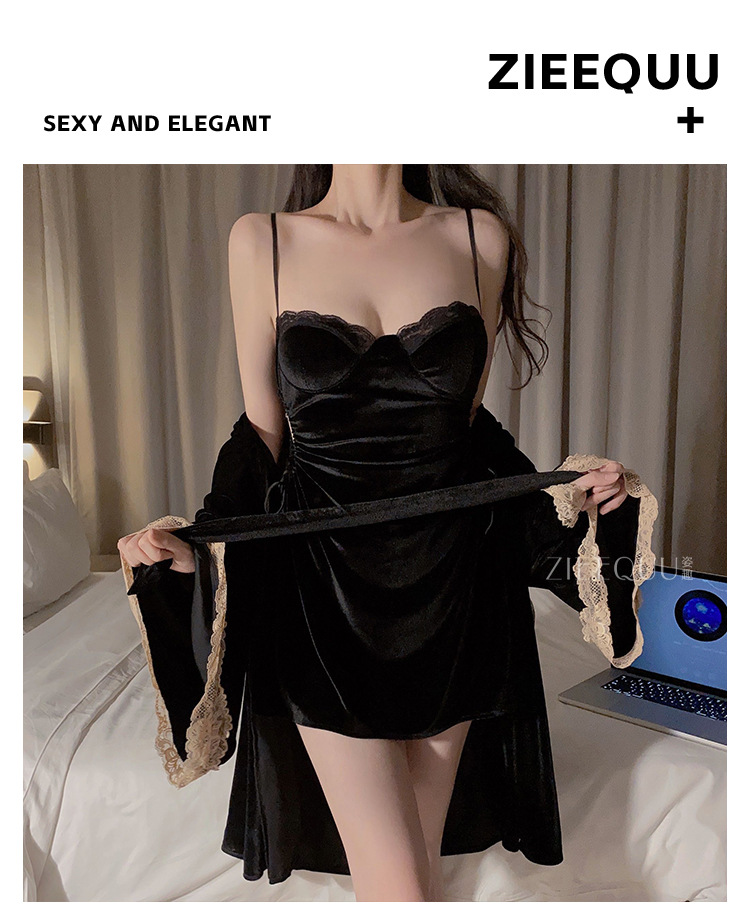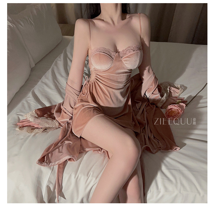 Ziqu 가을과 겨울 뉴 골드 벨벳 파자마, 가슴 패드 슬링 나이트 가운 투피스 홈 의류 여성 6211