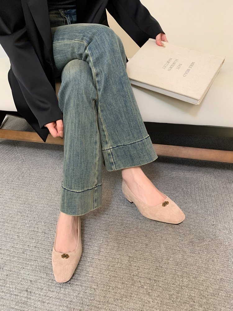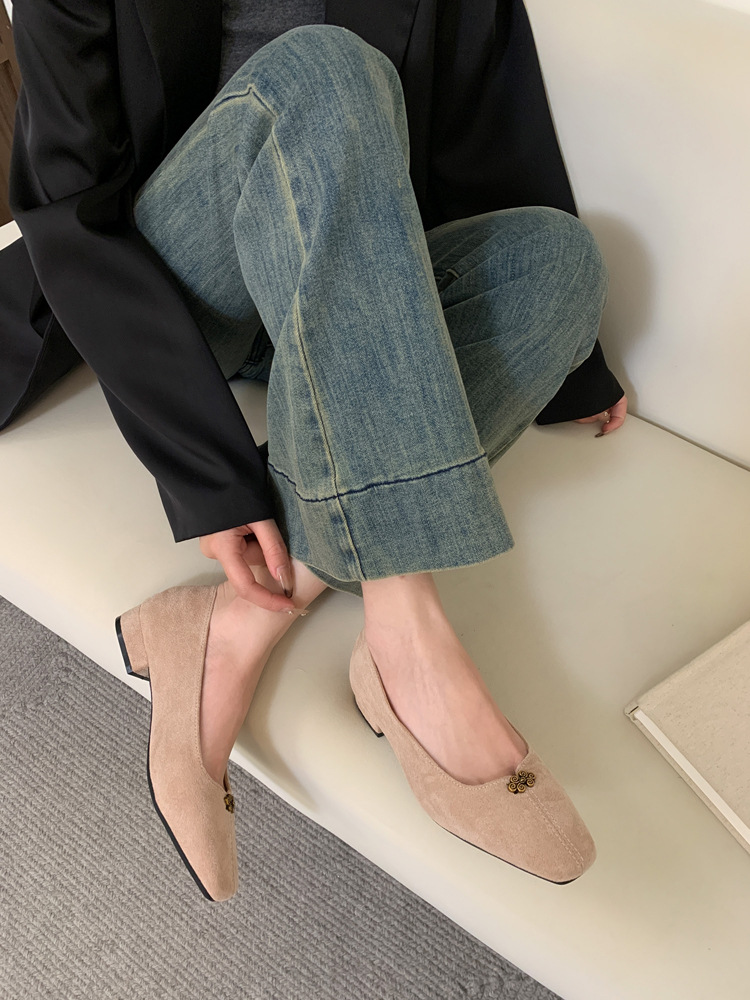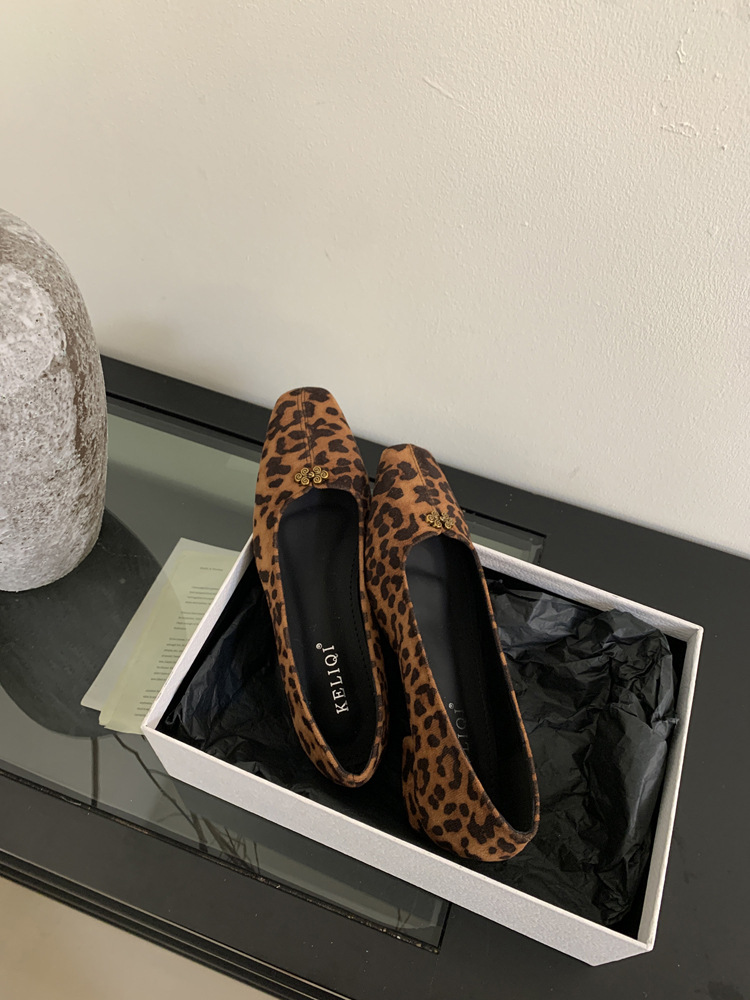 Chunky Heel Suede 얕은 프랑스 싱글 신발 여성 신발 봄과 가을 2024 새로운 틈새 레오파드 무늬 우아한 올 매치 펌프스토어 가기