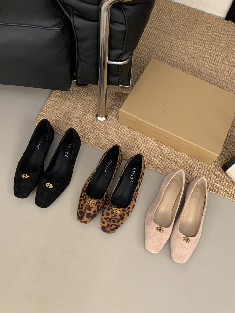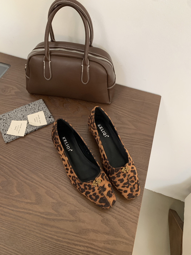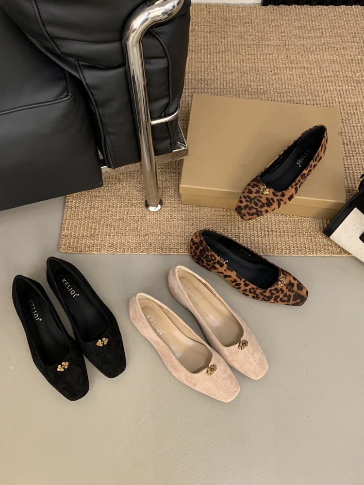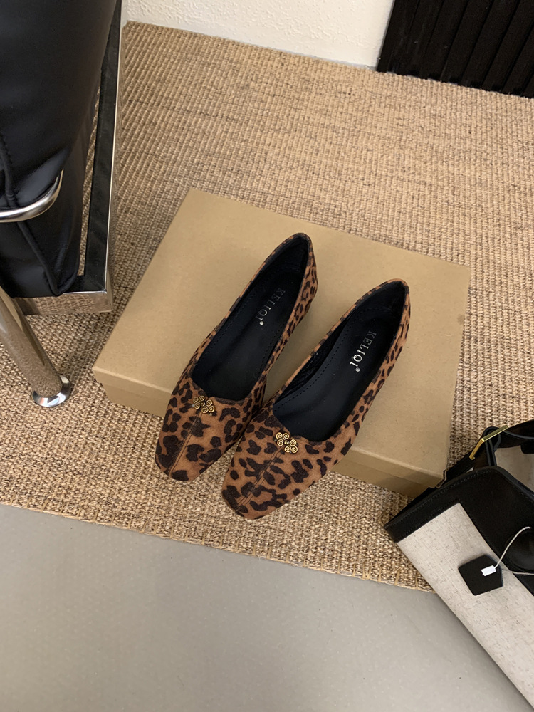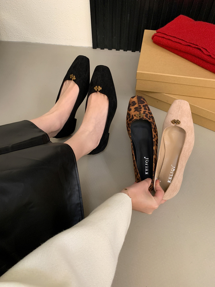 Chunky Heel Suede 얕은 프랑스 싱글 신발 여성 신발 봄과 가을 2024 새로운 틈새 레오파드 무늬 우아한 올 매치 펌프