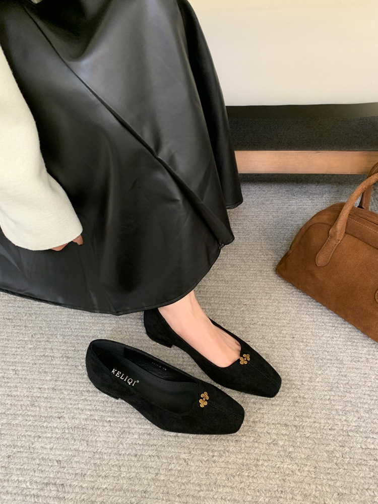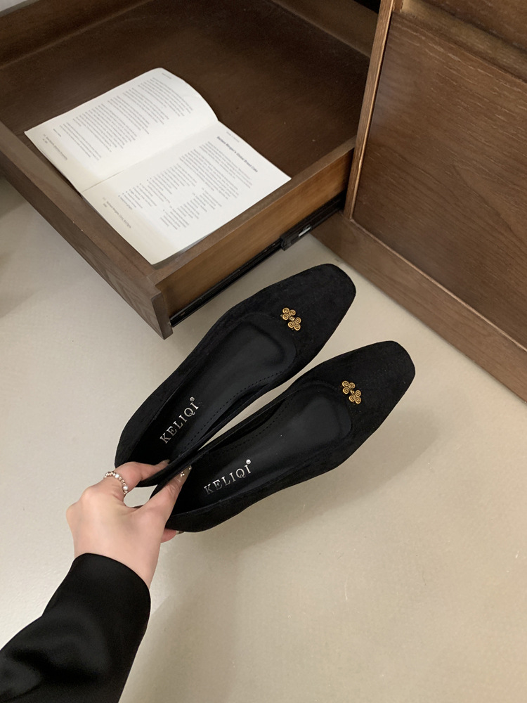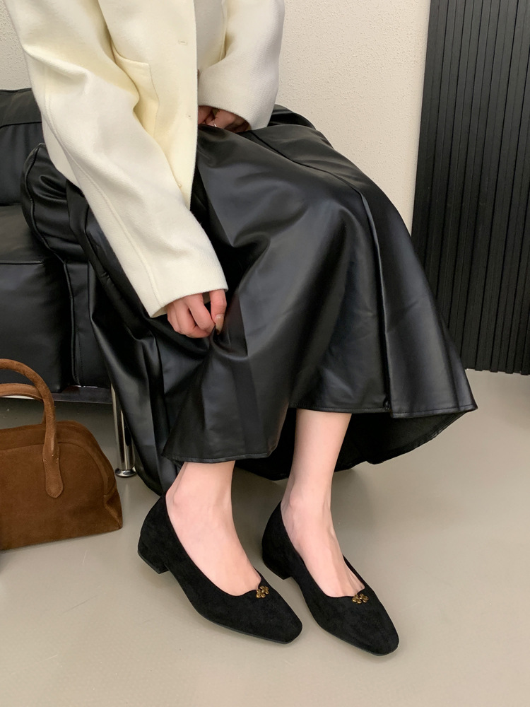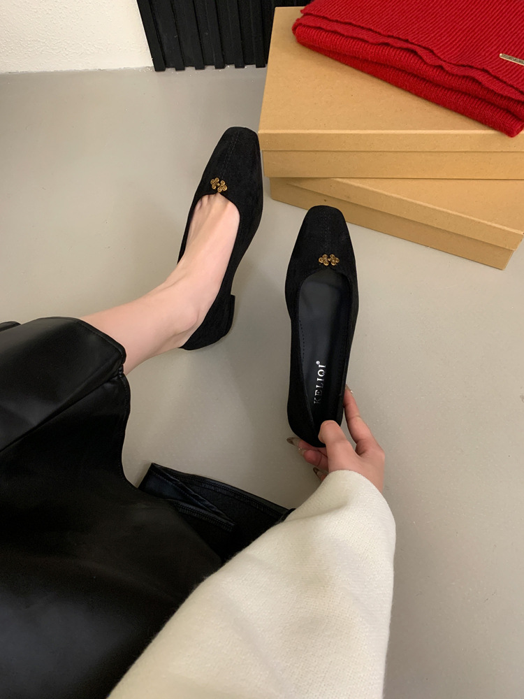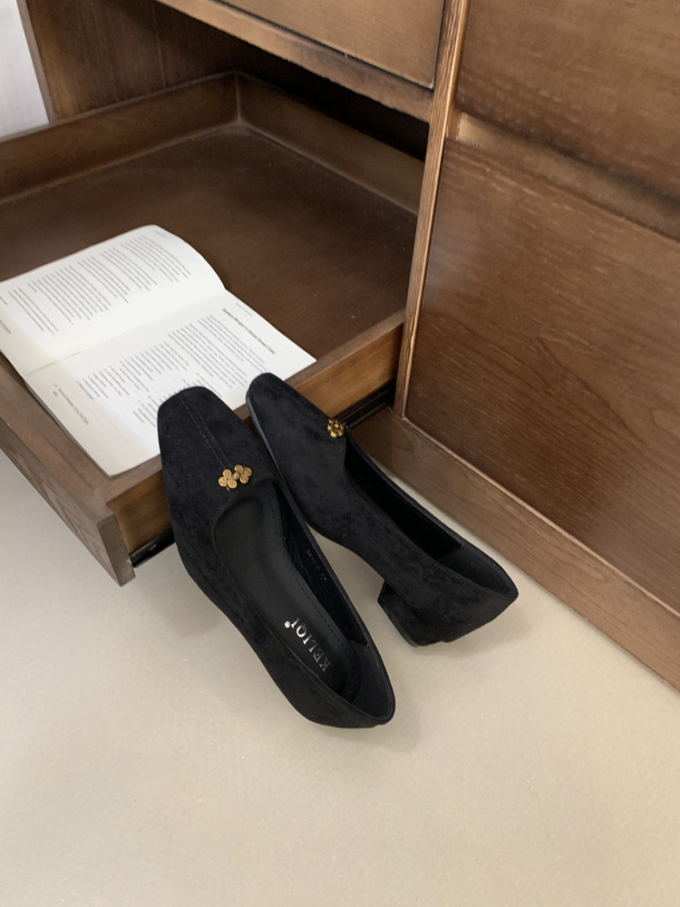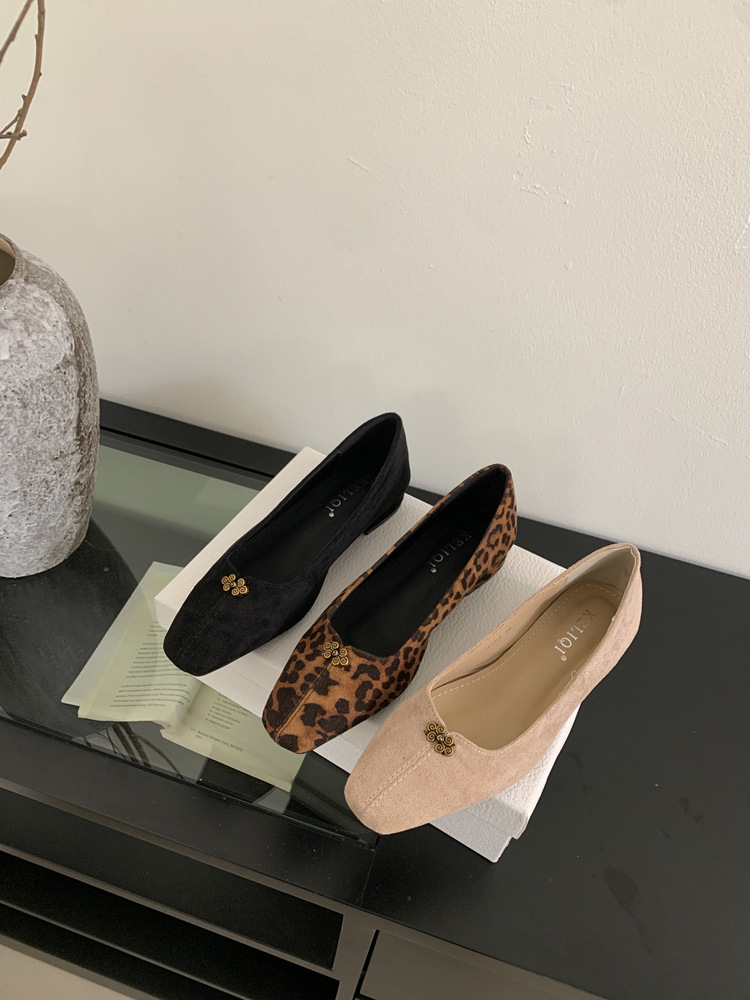 Chunky Heel Suede 얕은 프랑스 싱글 신발 여성 신발 봄과 가을 2024 새로운 틈새 레오파드 무늬 우아한 올 매치 펌프