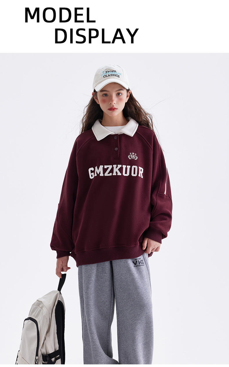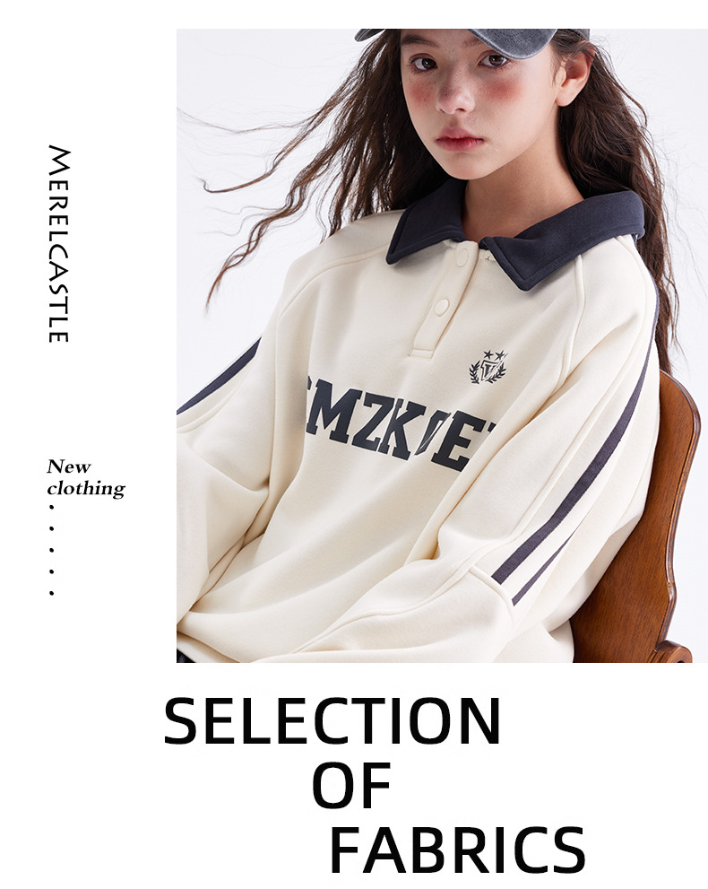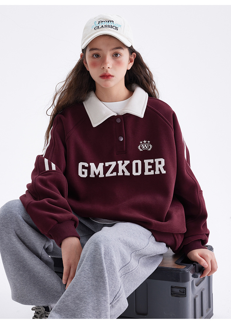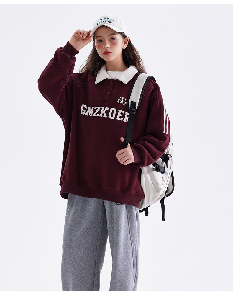 여자 기모 스웨터 겨울 2024 새로운 중학교 서양 스타일 미국 소녀 가을과 겨울 두꺼운 폴로 탑