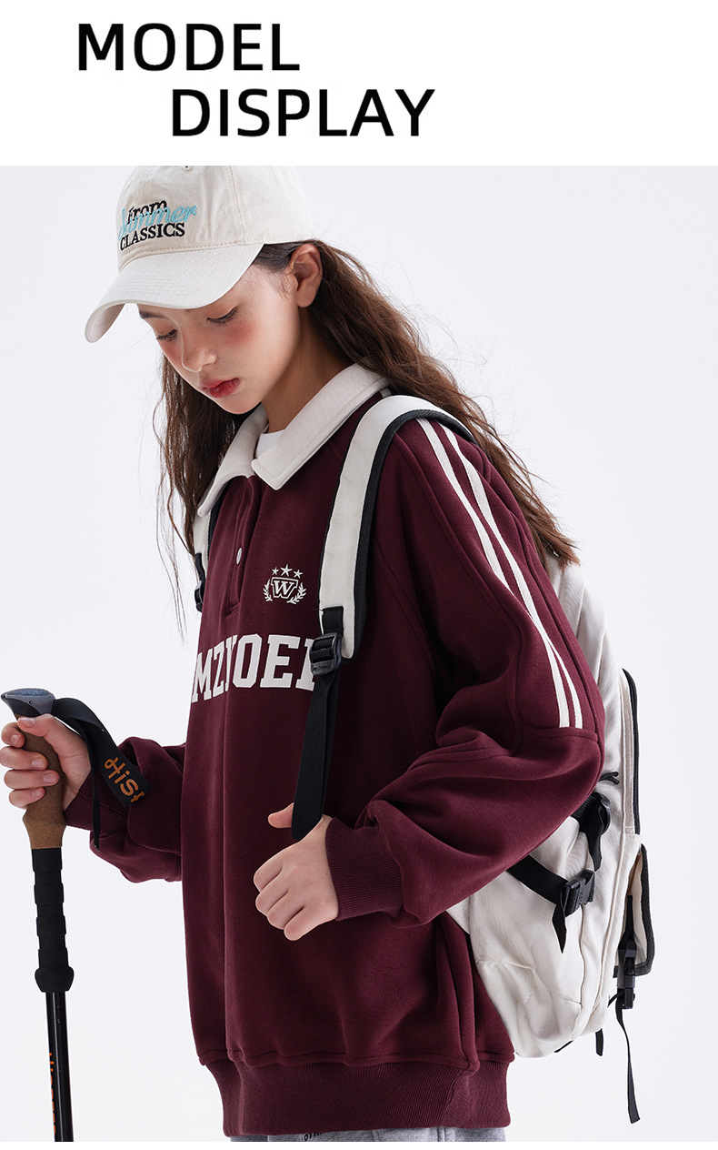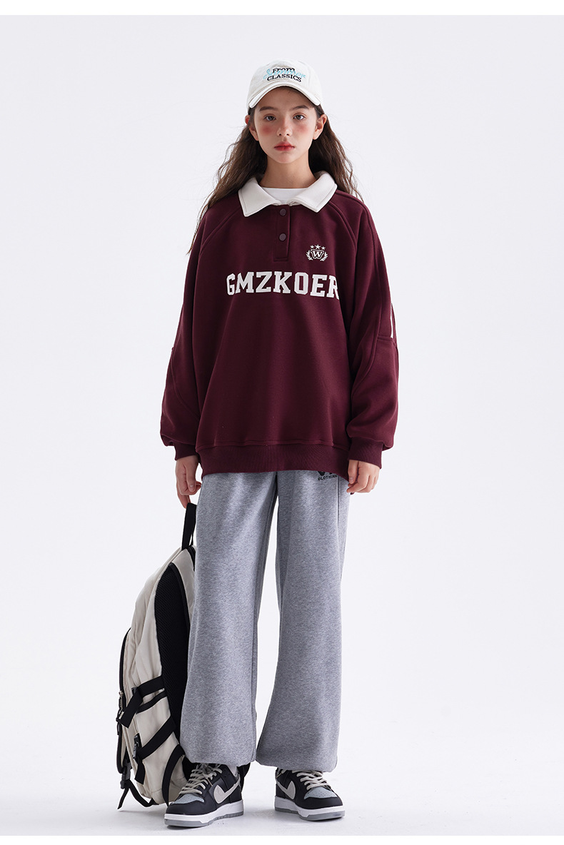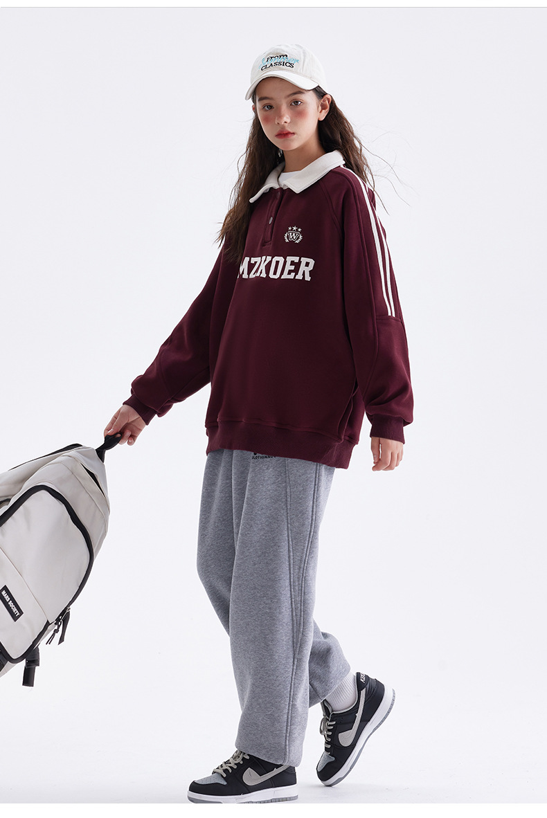 여자 기모 스웨터 겨울 2024 새로운 중학교 서양 스타일 미국 소녀 가을과 겨울 두꺼운 폴로 탑