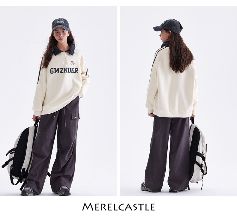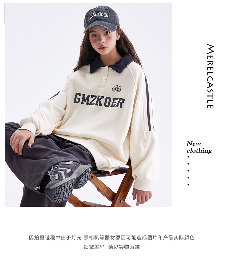 여자 기모 스웨터 겨울 2024 새로운 중학교 서양 스타일 미국 소녀 가을과 겨울 두꺼운 폴로 탑스토어 가기