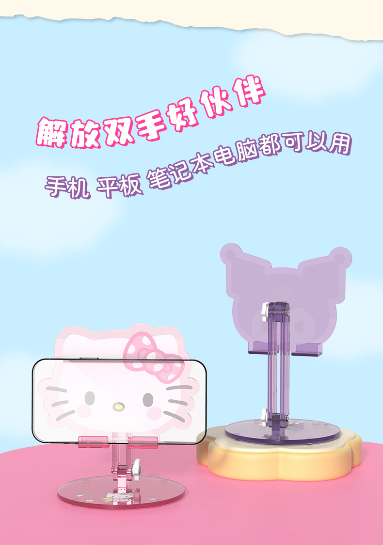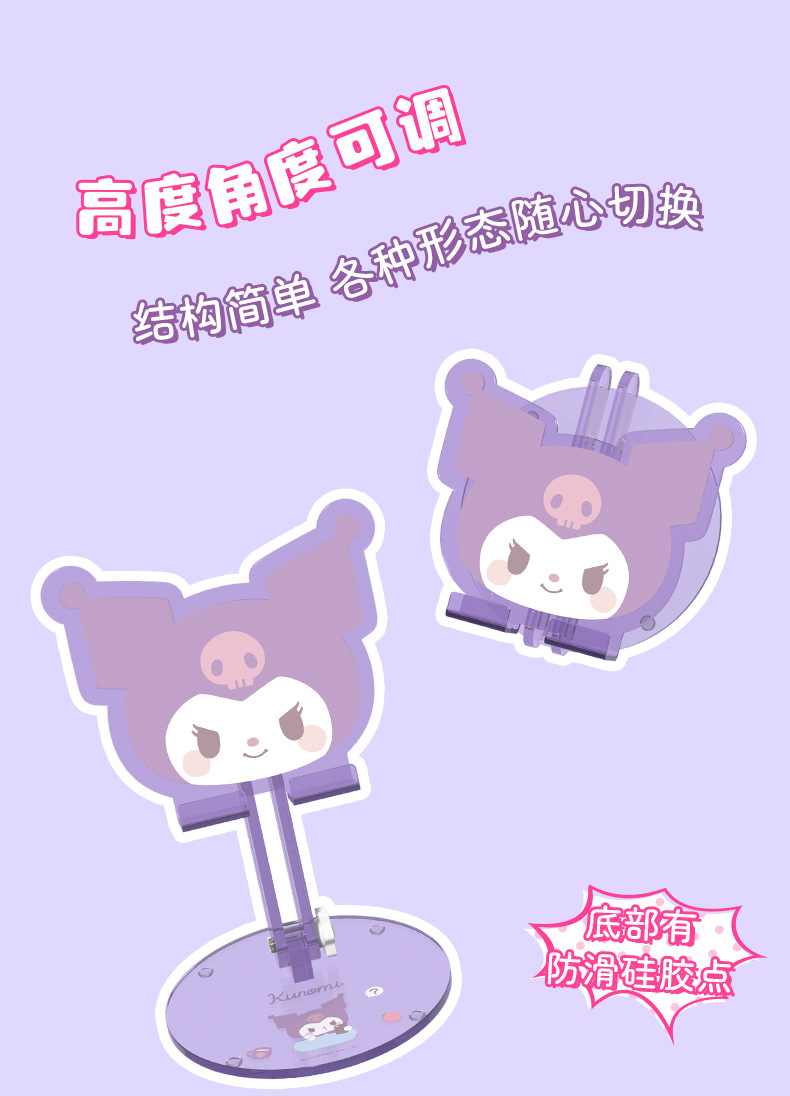Sanrio Kulomi 휴대 전화 스탠드 데스크탑 게으른 태블릿 지원 스탠드 접는 휴대 전화 스탠드 리프팅 텔레스코픽 라이브 방송스토어 가기