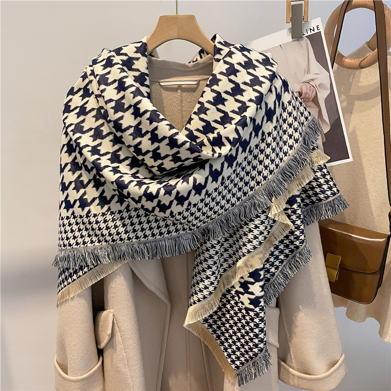 Houndstooth 새로운 스타일 스카프 여성 유럽과 미국 스타일 서양식 모조 캐시미어 스카프 두꺼운 에어컨 룸 따뜻한 목도리 케이프
