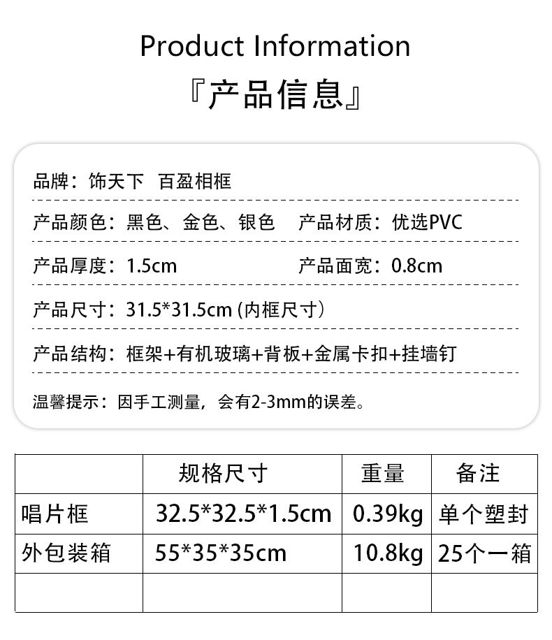 국경 간 12inch 비닐 레코드 프레임 홈 장식 사진 디스플레이 프레임 사진 사진 프레임 레코드 보관함스토어 가기