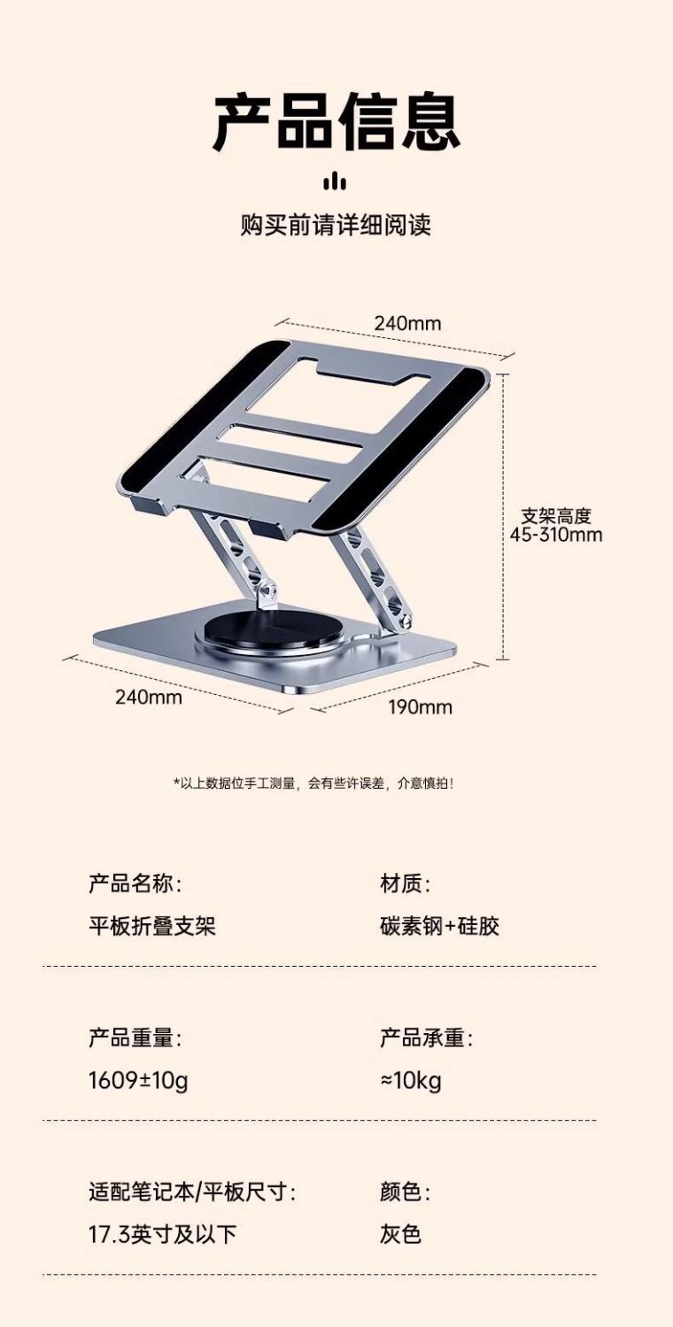 • 노트북/태블릿용 범용 [탄소강/360°회전】프로스트 그레이