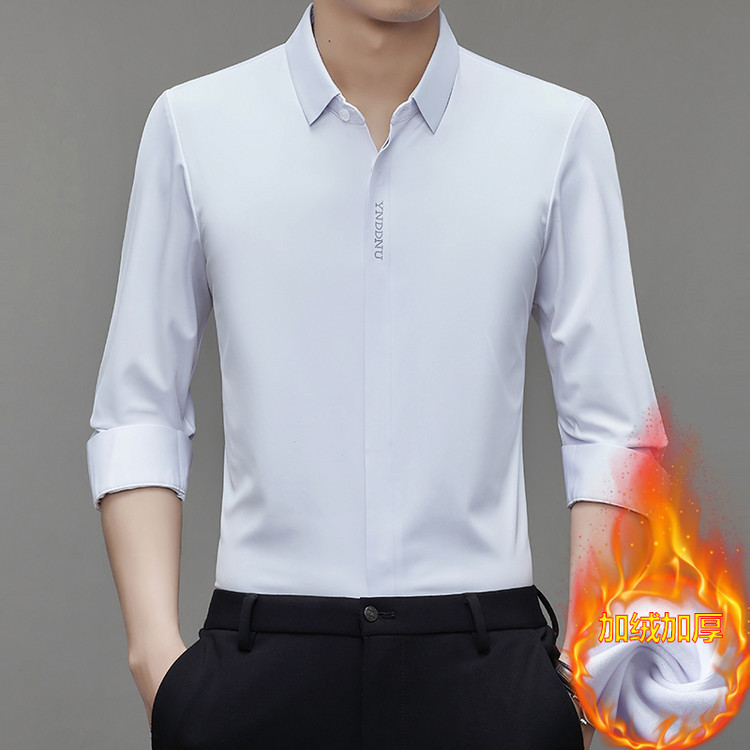 남성용 기모 보온 셔츠 남성 가을 겨울 무봉제 비즈니스 캐주얼 두꺼운 긴팔 셔츠 남성용 두꺼운 보온 셔츠