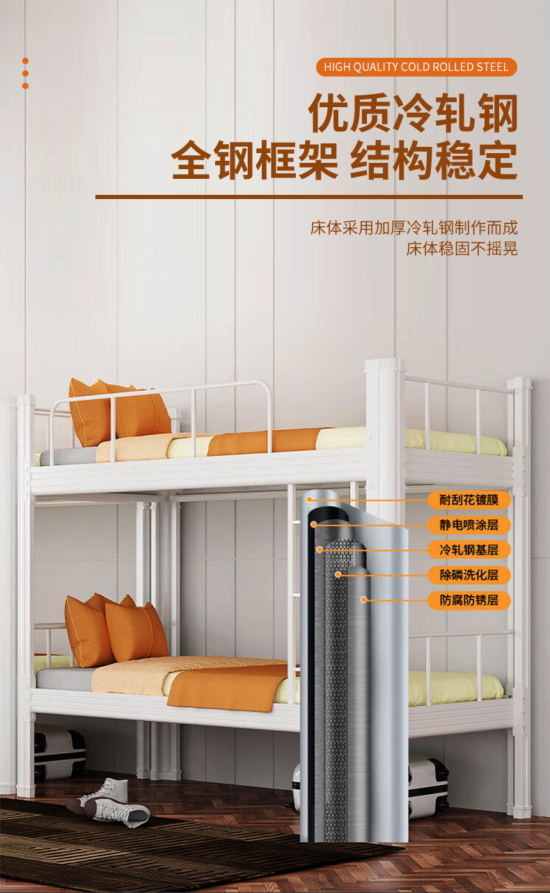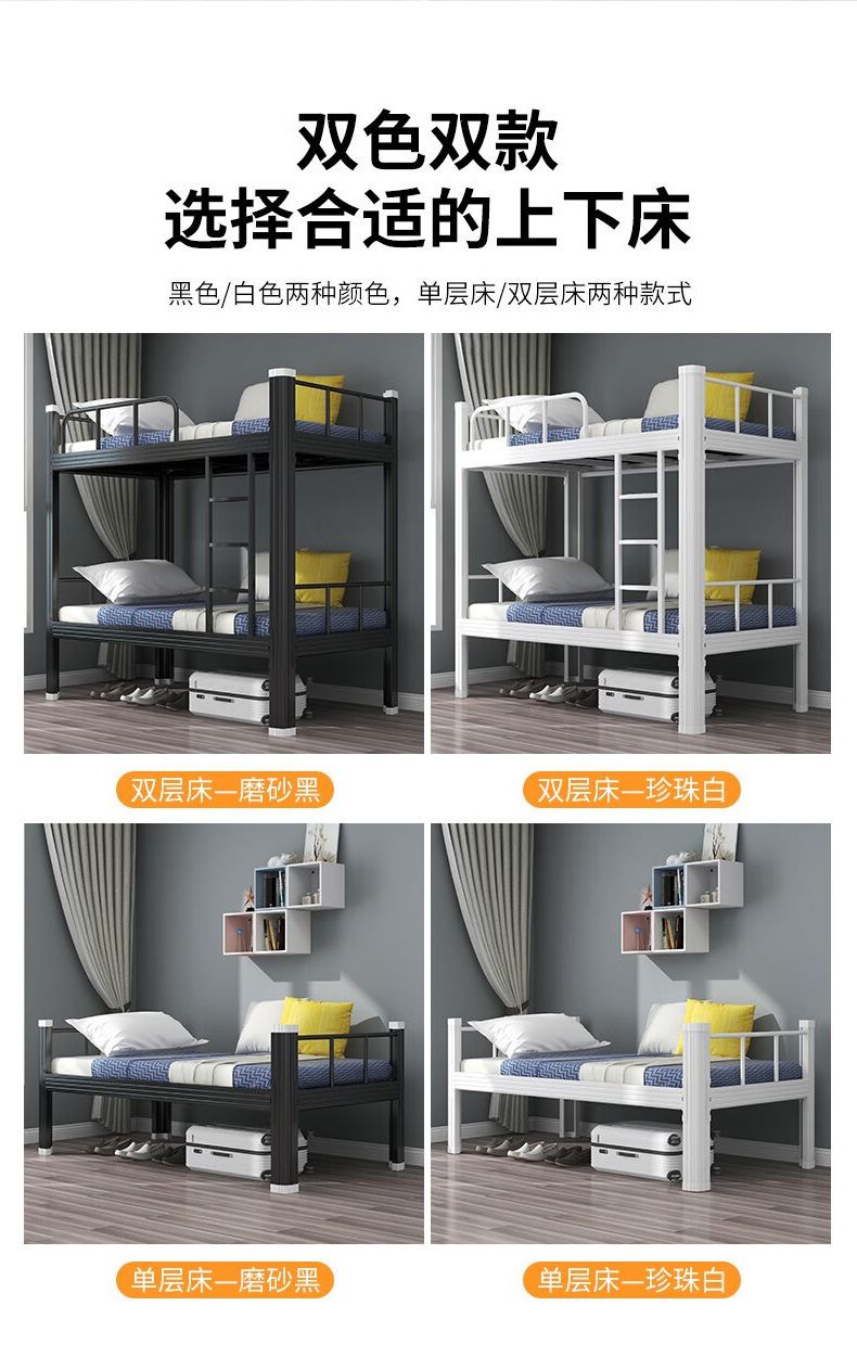 상단 및 하단 이층 철침대 이층 침대 직원 기숙사 침대 상단 및 하단 학교 프로필 침대 아파트 침대 강철 철 높고 낮은 침대스토어 가기