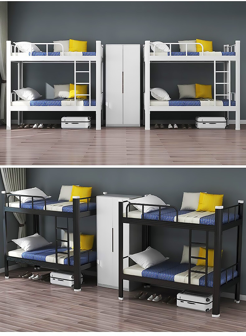 상단 및 하단 이층 철침대 이층 침대 직원 기숙사 침대 상단 및 하단 학교 프로필 침대 아파트 침대 강철 철 높고 낮은 침대