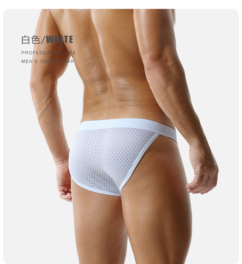 솔리드 컬러 남성 속옷 넓은 허리 메쉬 얇은 통기성 U-볼록 포켓 탄성 플러스 사이즈 낮은 허리 스포츠 높은 포크 바지