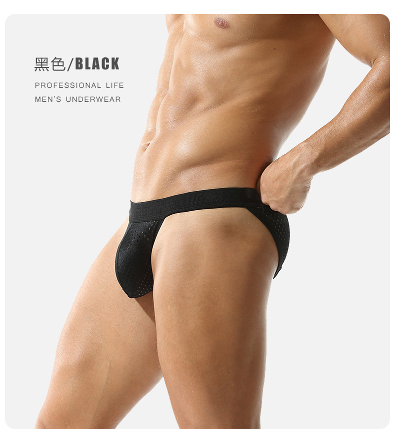 솔리드 컬러 남성 속옷 넓은 허리 메쉬 얇은 통기성 U-볼록 포켓 탄성 플러스 사이즈 낮은 허리 스포츠 높은 포크 바지스토어 가기