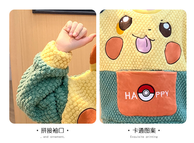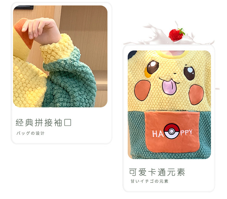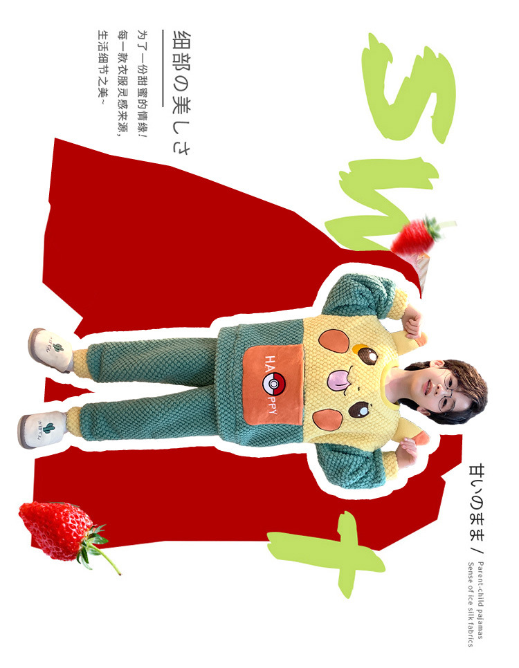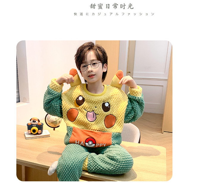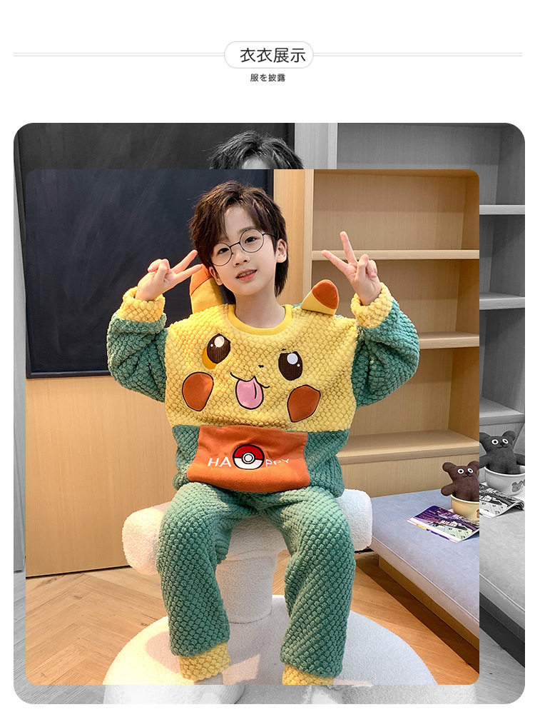 어린이 잠옷 산호 양털 가을과 겨울 귀여운 만화 소년 둥근 목 두꺼운 따뜻한 중대형 어린이 가정 옷 세트스토어 가기