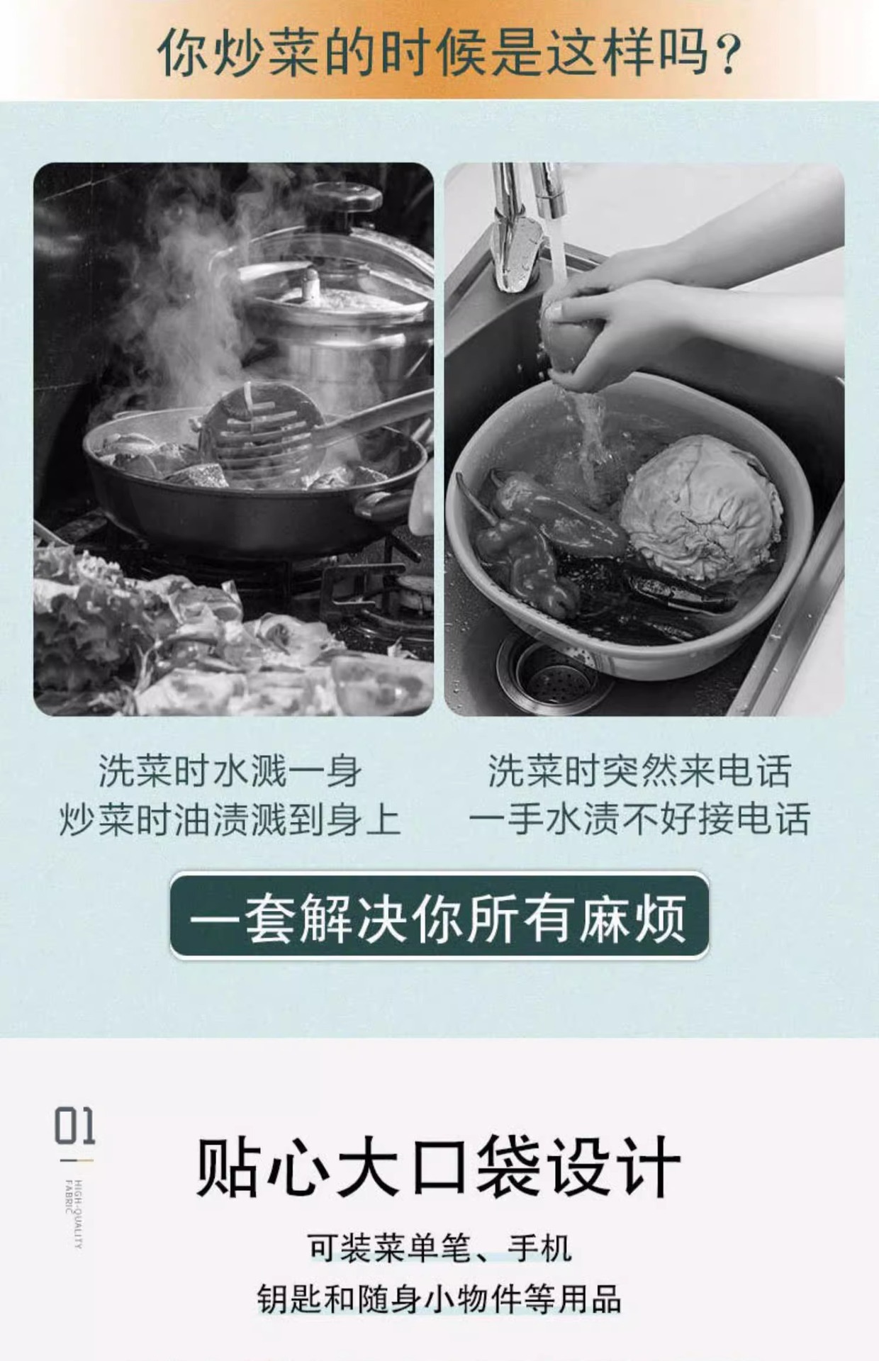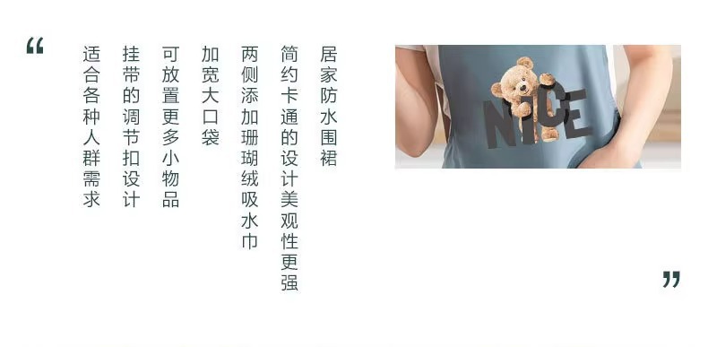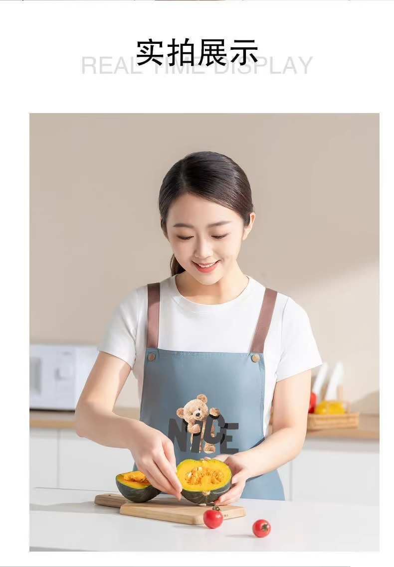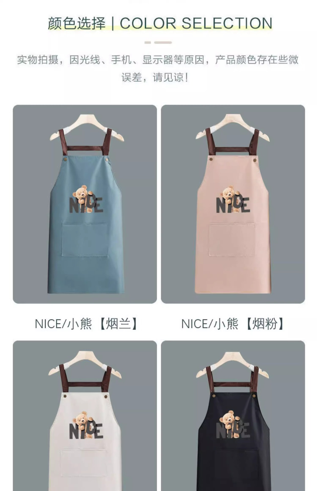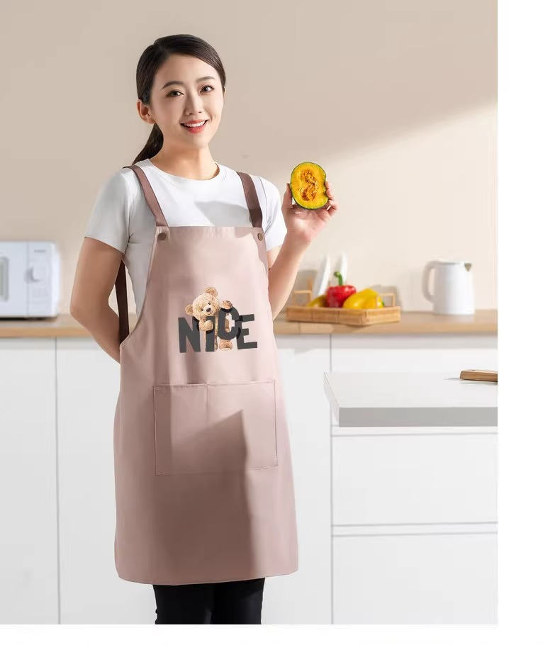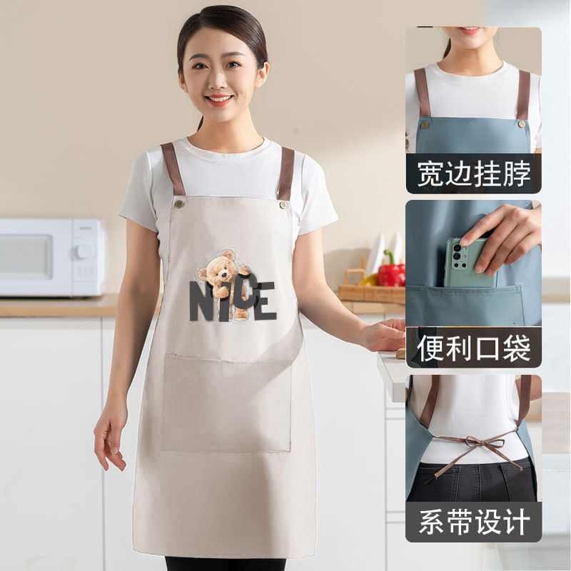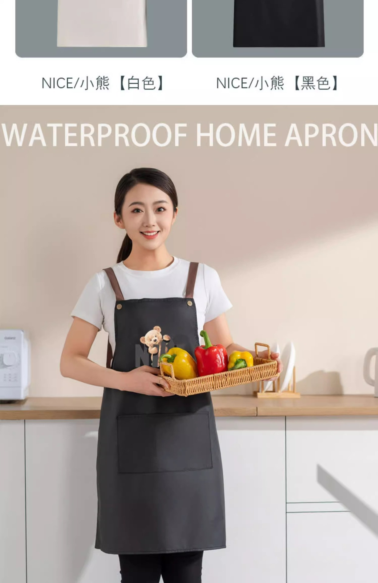 • 곰앞치마 베이지 - 1팩 [휴대폰 수납 가능, 방수, 방유]