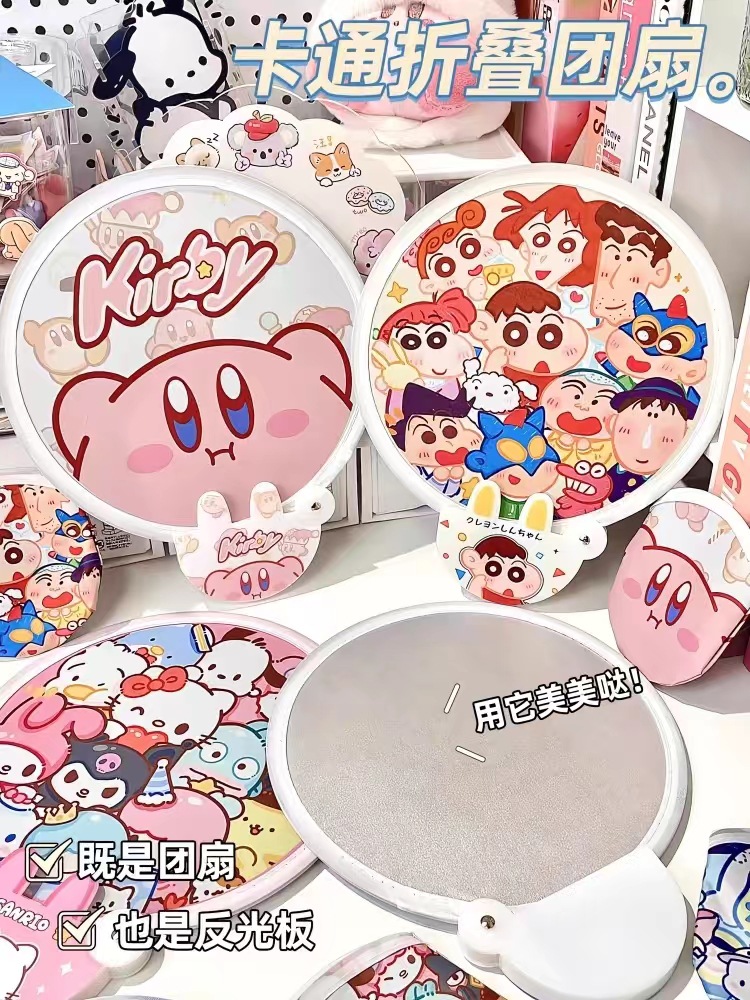 만화 셀카 반사경 접이식 팬 휴대용 어린이 그룹 팬 여름 귀여운 작은 팬 휴대용스토어 가기