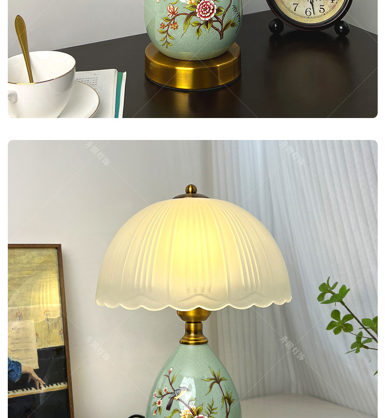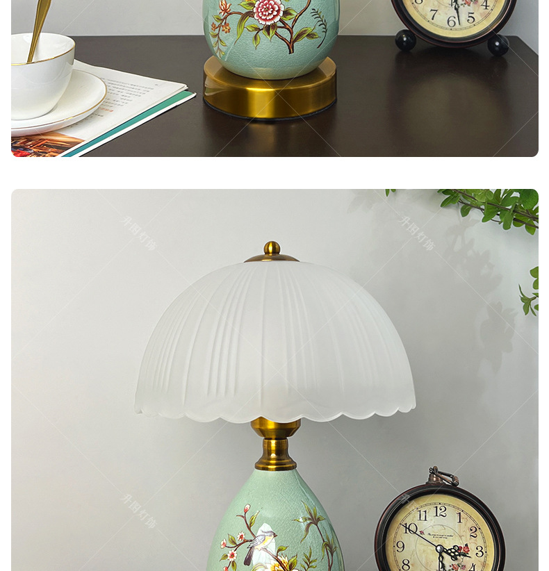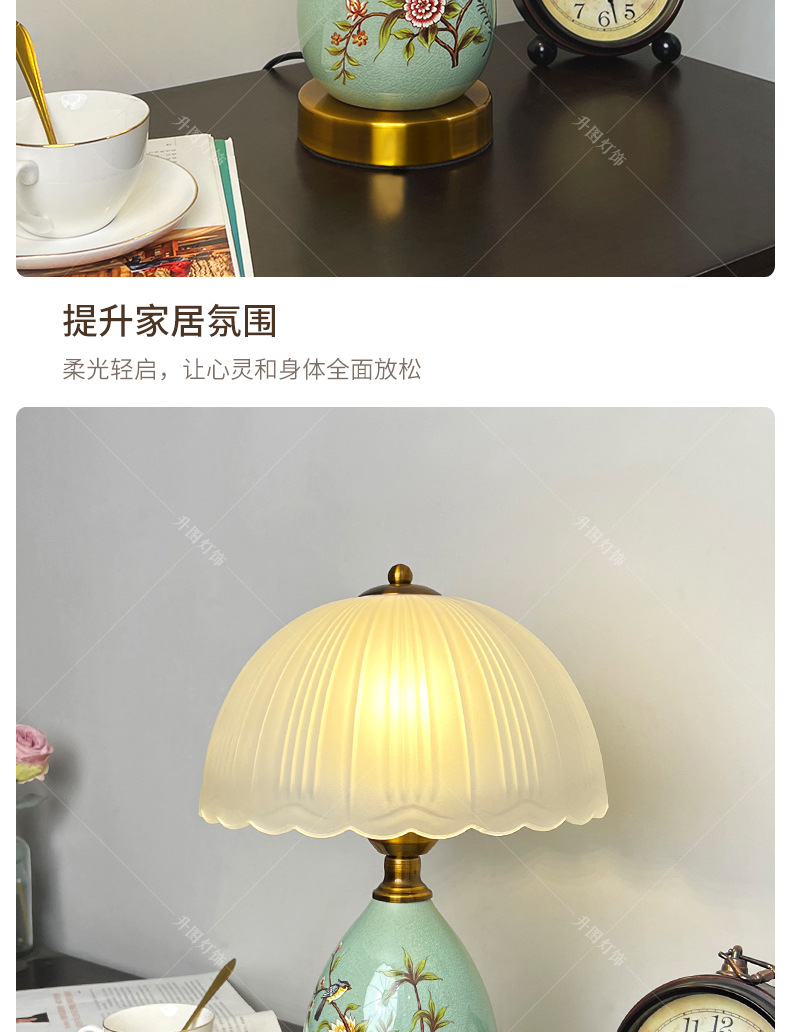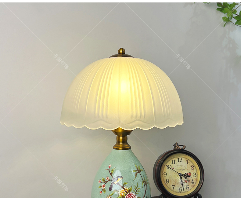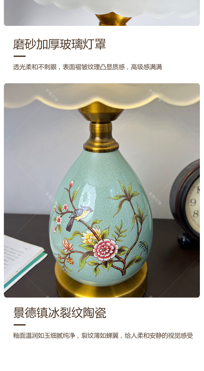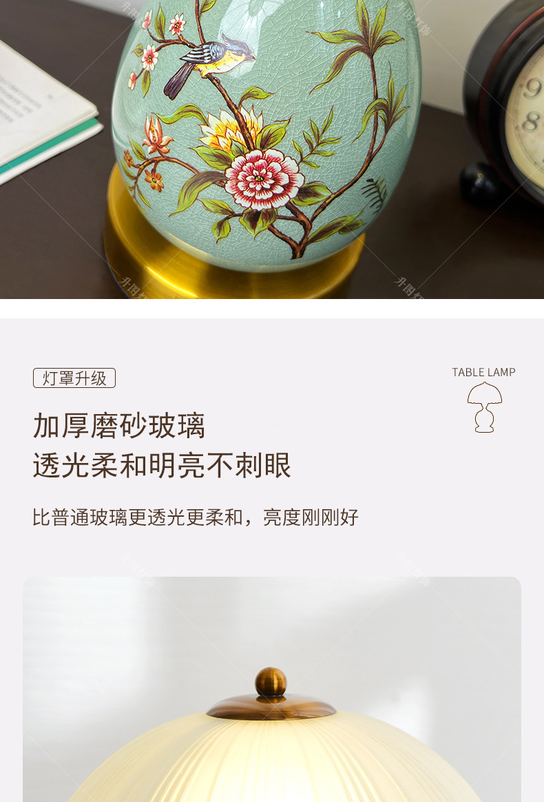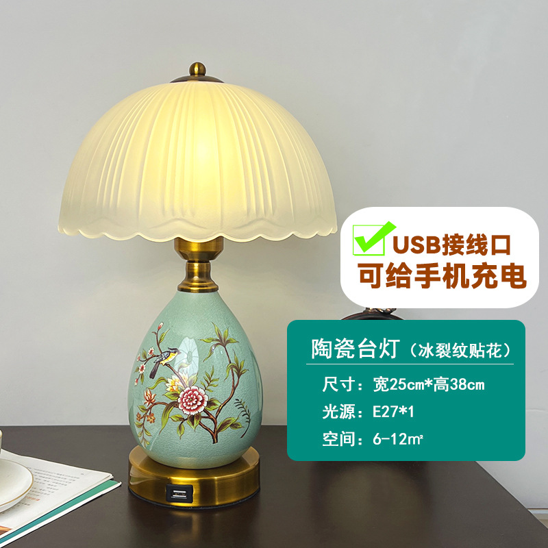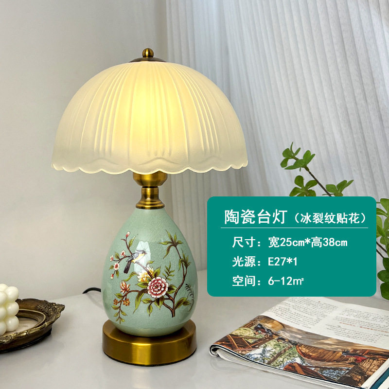 빈티지 테이블 램프 침실 침실 램프 고급 감각 창조적 인 홈 새로운 중국 스타일 거실 연구 장식 세라믹 작은 테이블 램프