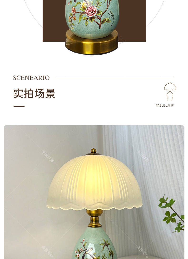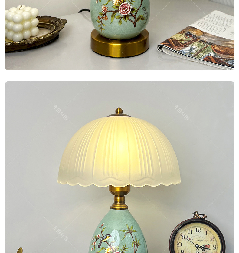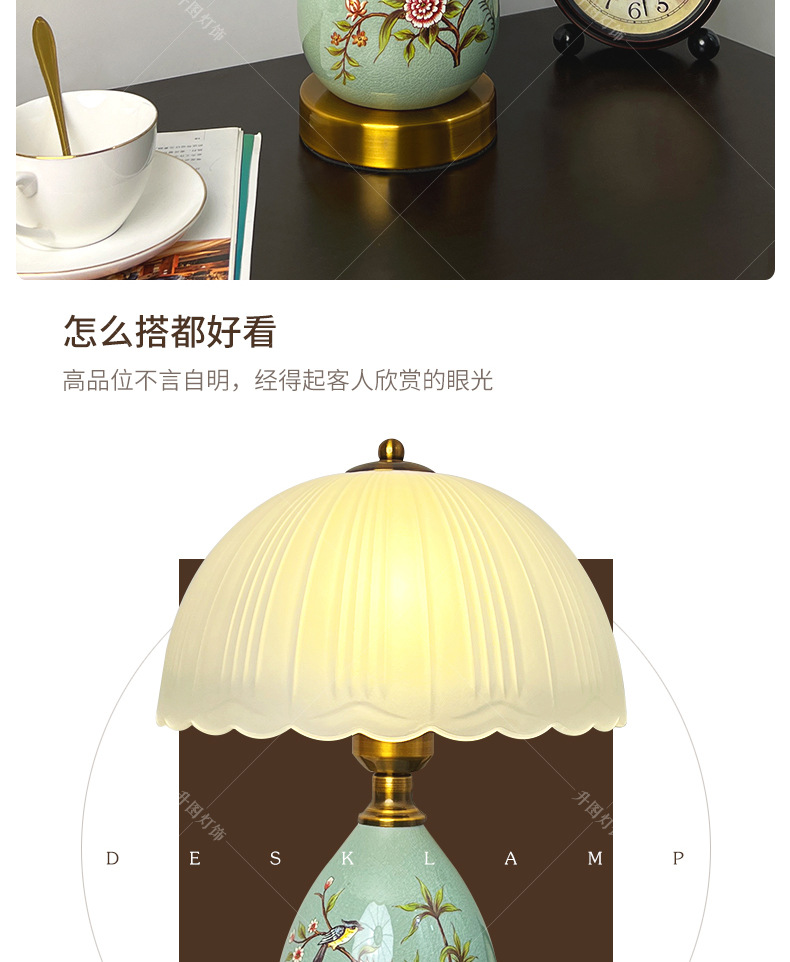 빈티지 테이블 램프 침실 침실 램프 고급 감각 창조적 인 홈 새로운 중국 스타일 거실 연구 장식 세라믹 작은 테이블 램프스토어 가기