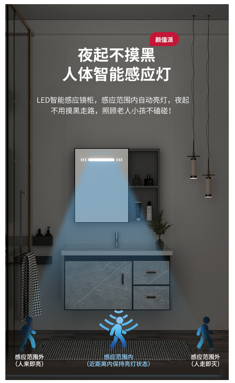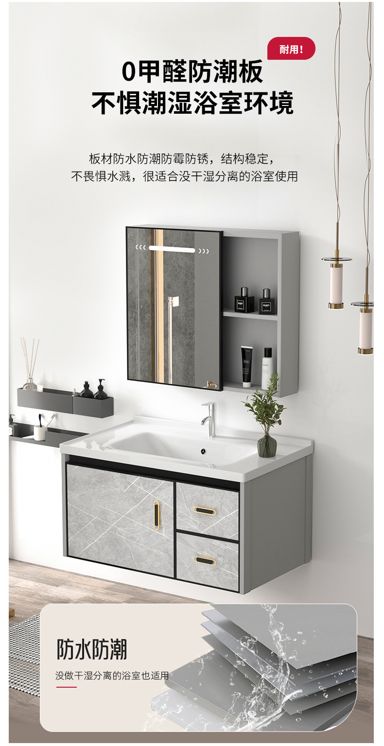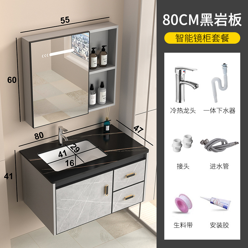 • 더블 인출식 메인 캐비닛 80cm 세라믹 세면대 + 스마트 거울 캐비닛