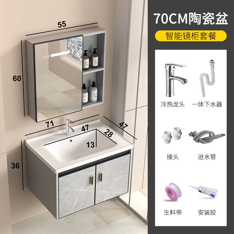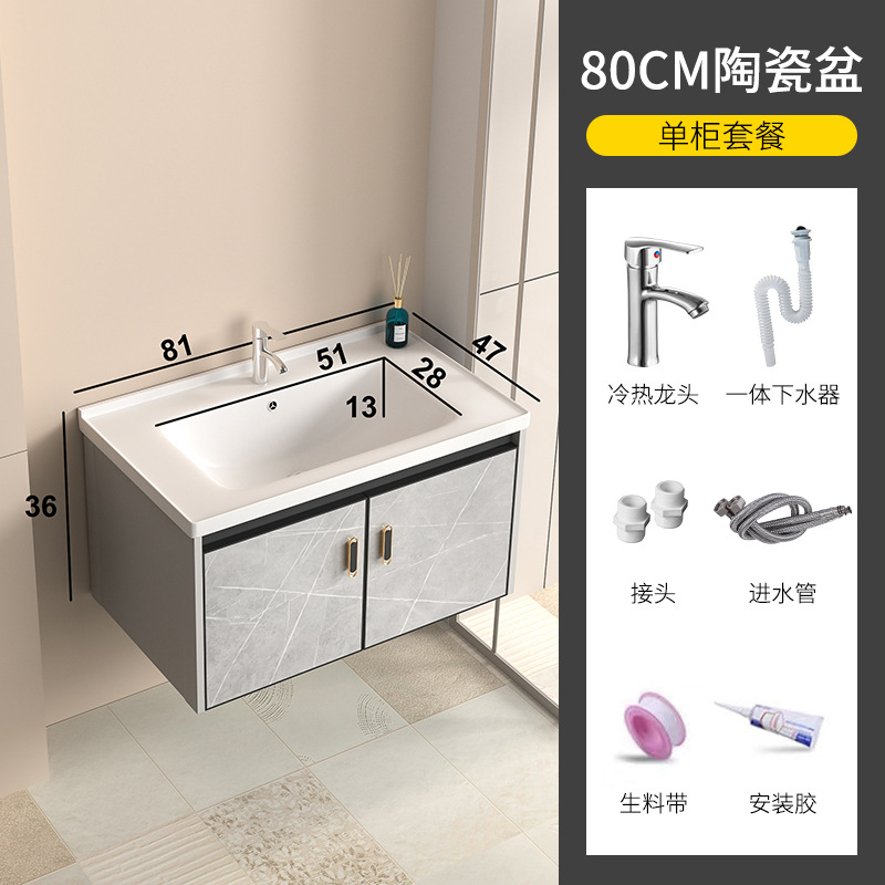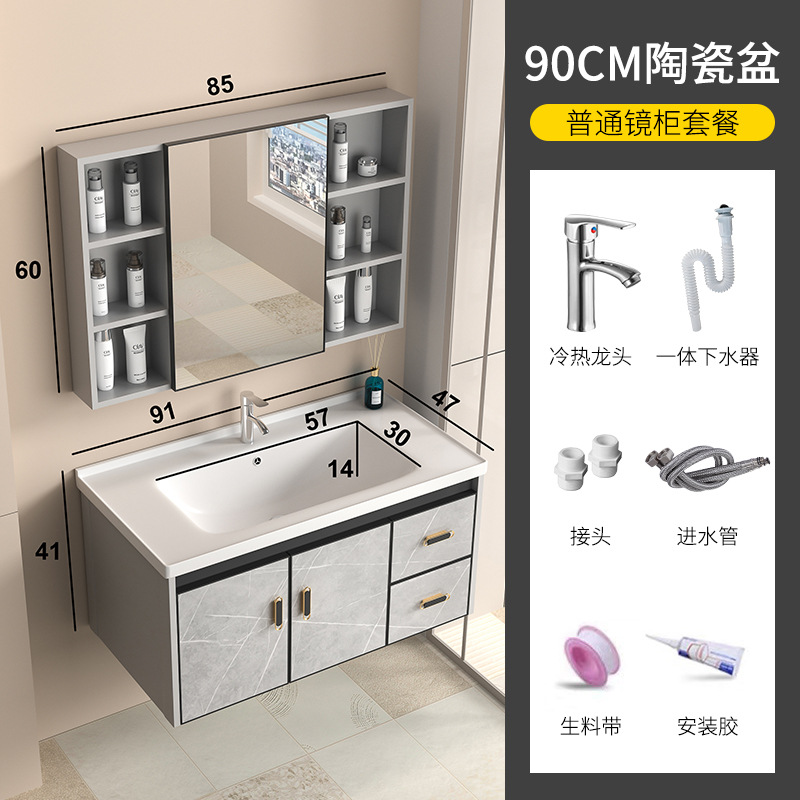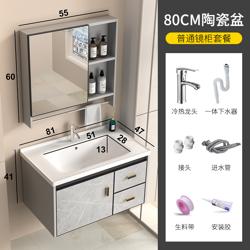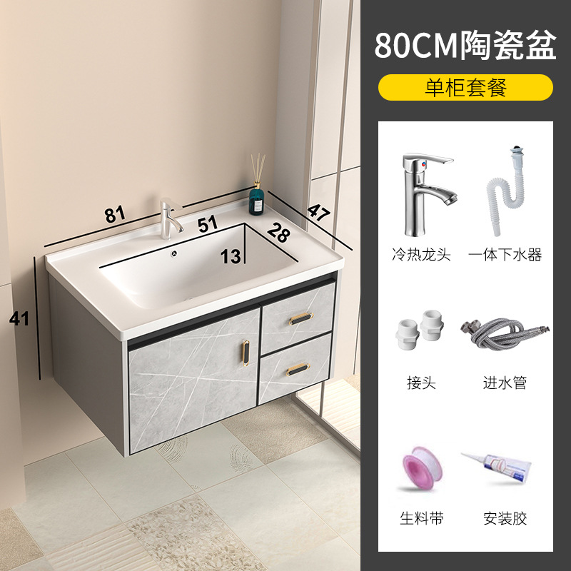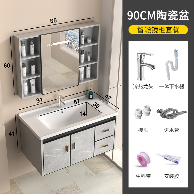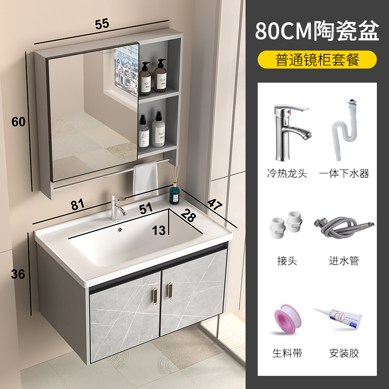 간단한 공간 알루미늄 욕실 캐비닛 세면기 캐비닛 조합 화장실 세면기 캐비닛 세면기 테이블 통합 세라믹 분지스토어 가기