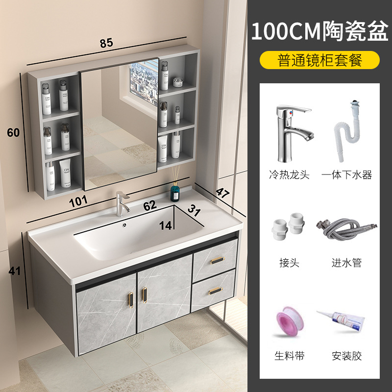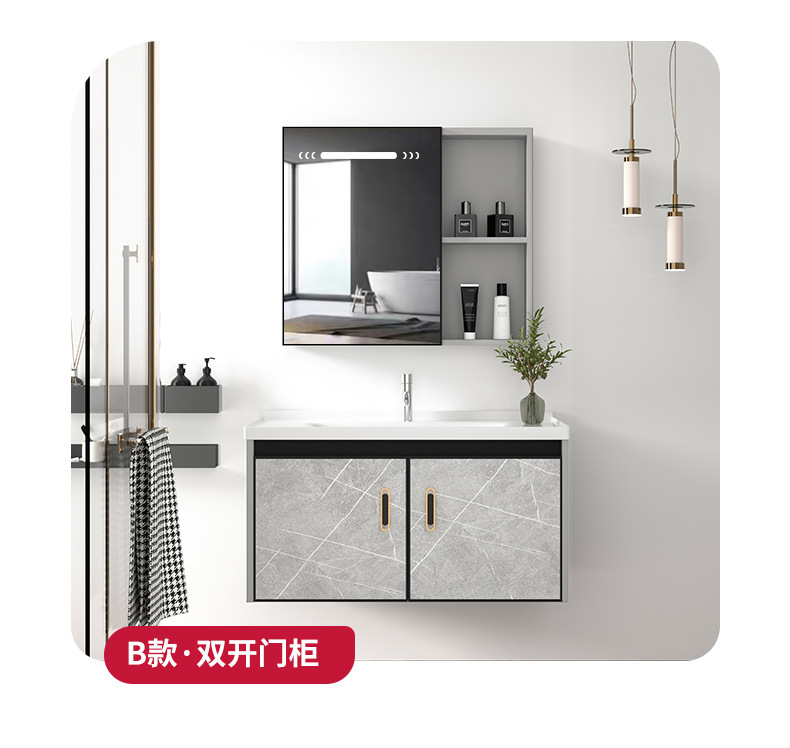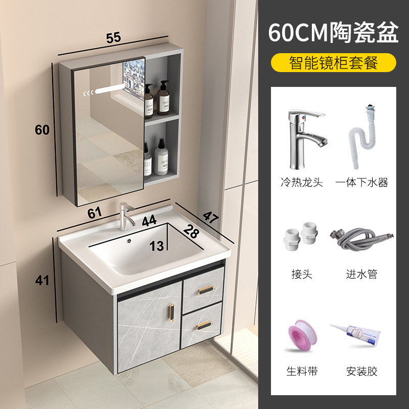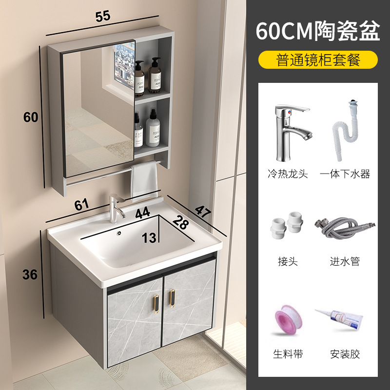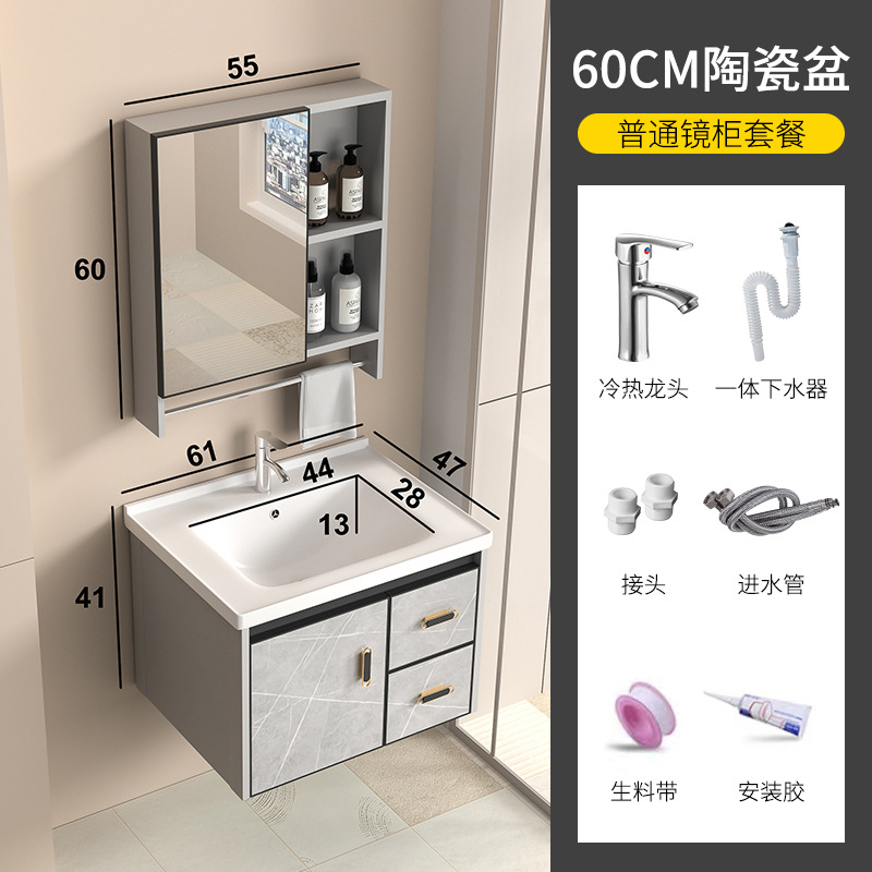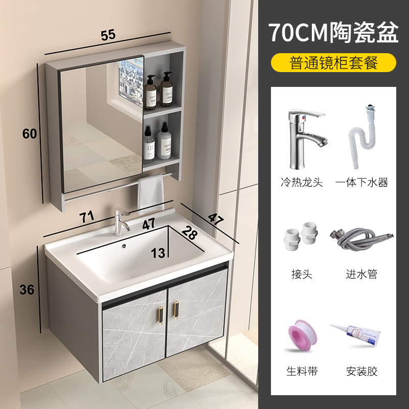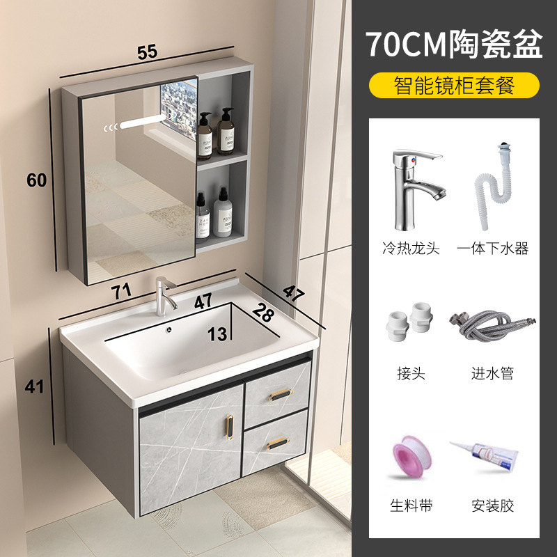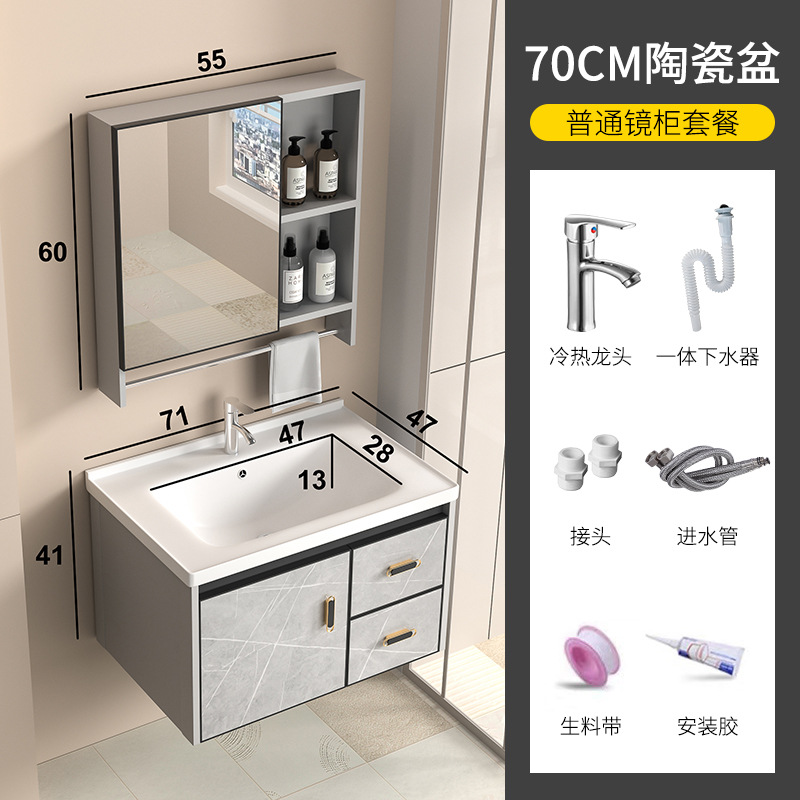 간단한 공간 알루미늄 욕실 캐비닛 세면기 캐비닛 조합 화장실 세면기 캐비닛 세면기 테이블 통합 세라믹 분지스토어 가기