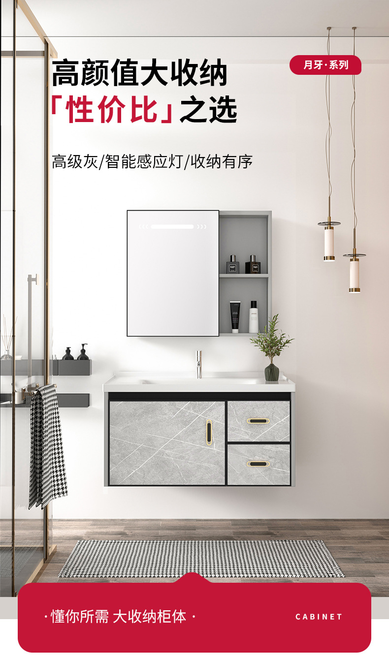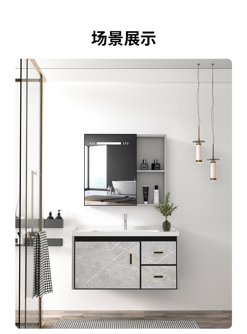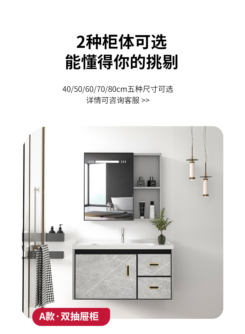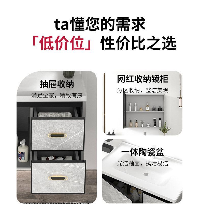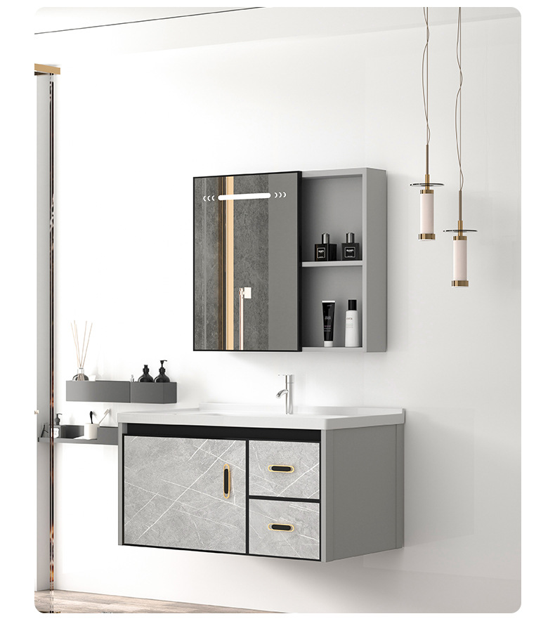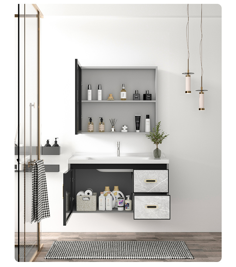 간단한 공간 알루미늄 욕실 캐비닛 세면기 캐비닛 조합 화장실 세면기 캐비닛 세면기 테이블 통합 세라믹 분지스토어 가기