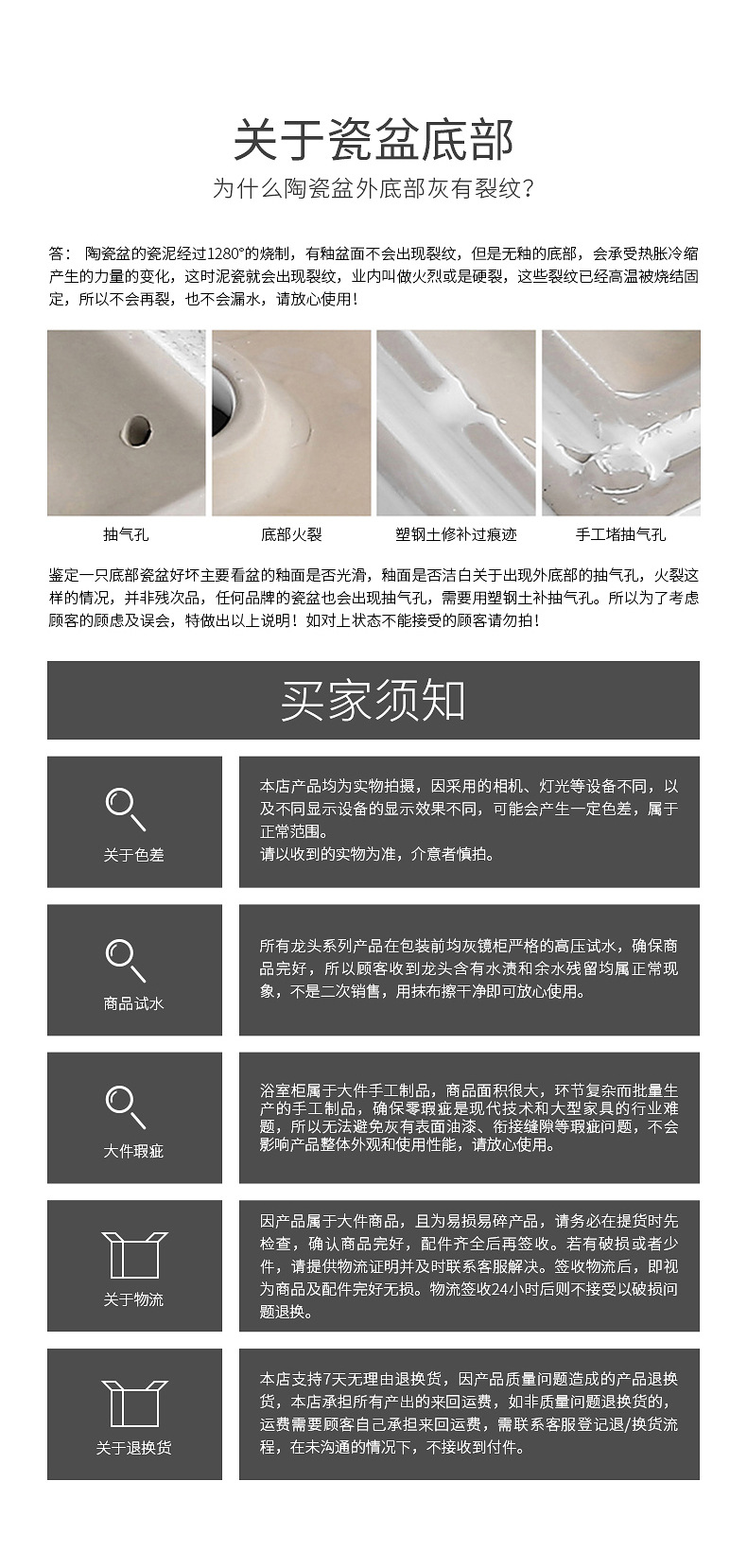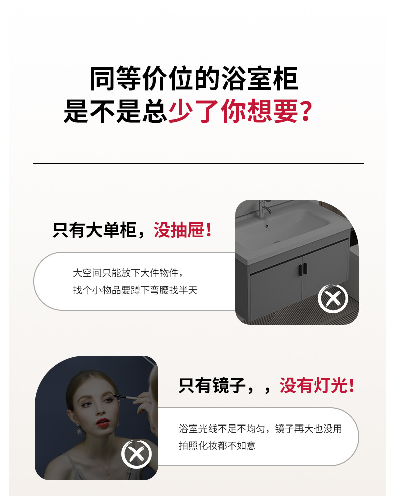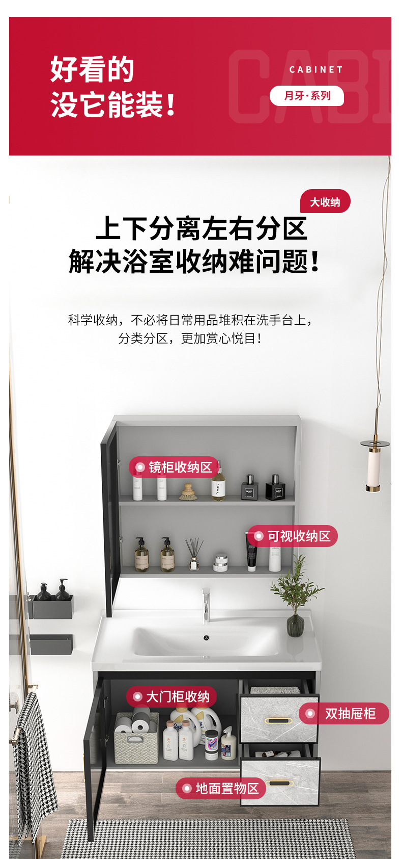 • 이중 인출식 메인 캐비닛 60cm 세라믹 세면대 + 거울 캐비닛