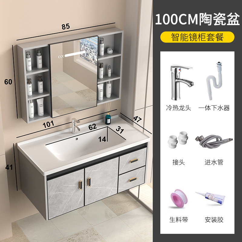 • 이중 인출식 메인 캐비닛 100cm 세라믹 세면대 + 스마트 거울 캐비닛